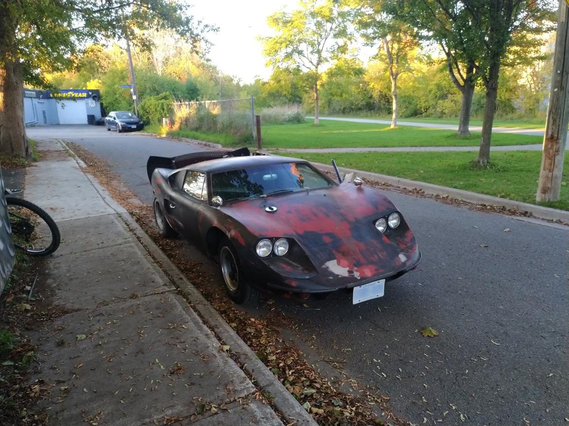 Saw a guy wrenching on this while out on a bike ride and had to stop. It's a Fiberfab Avenger, a Beetle-based GT40-looking kit car. Under 50HP with the stock-spec Beetle engine but also under 1500lbs. When you look at the height of this thing you might wonder if it's shorter than a GT40, but it's actually 43" tall. I managed to get into it and with a quick-release wheel, it would be easier than getting into an Elise.