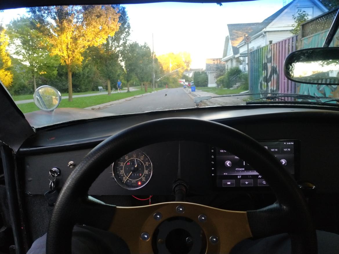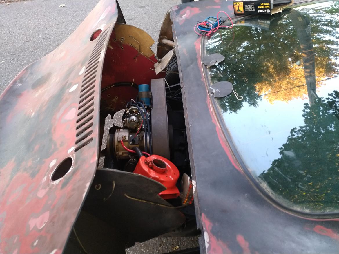 He was taking it on a first test drive around the neighborhood when it had a breakdown, he'd like to take it on track eventually but it's far from ready for that. It was on 20+yo tires, some bigger diameter wheels would be handy for fitting modern performance rubber but there aren't a lot of affordable options for the Beetle bolt pattern, he was saying the best bet is finding some old 16" wheels.