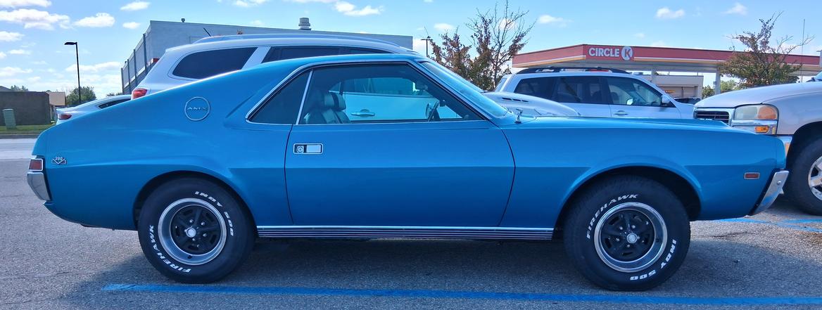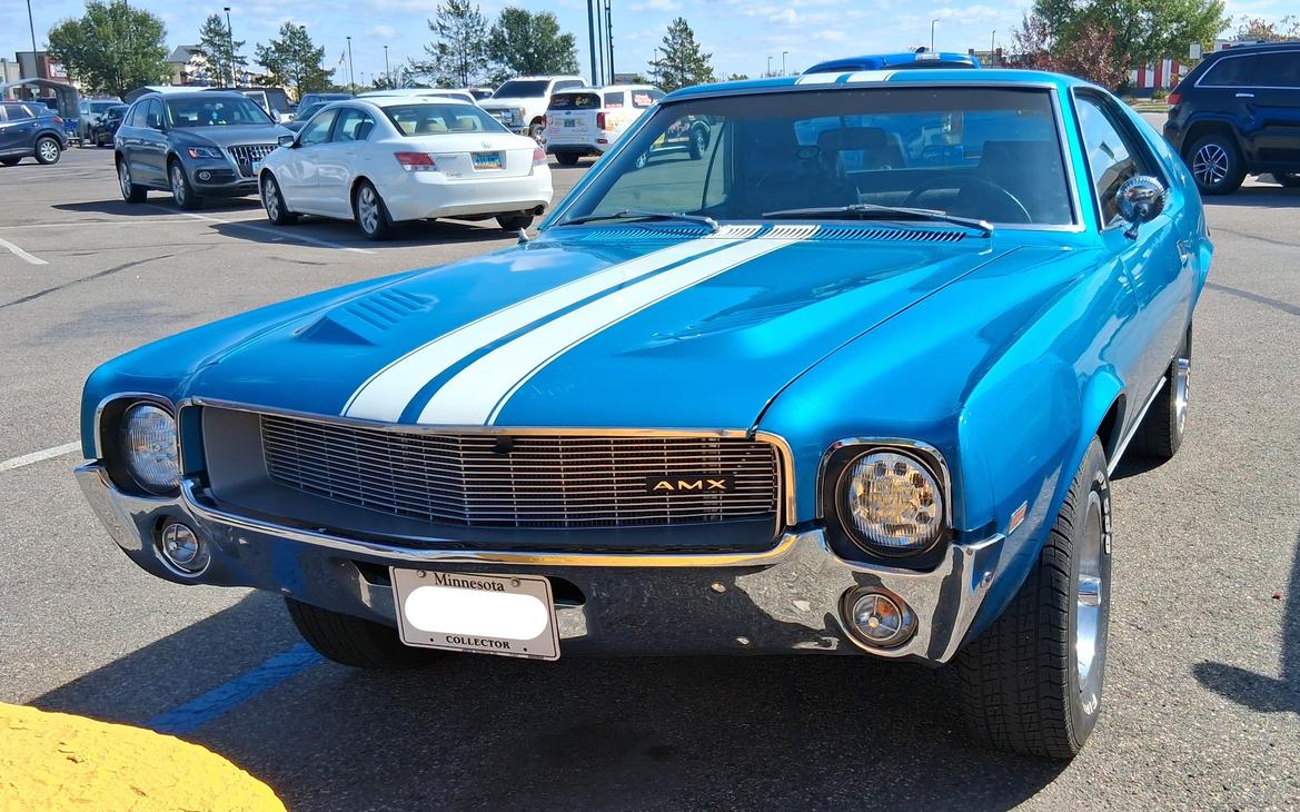 Amazing what shows up at the Menards Home Improvement Center. I had no idea how short the AMC AMX is, only an inch longer wheelbase than a Gremlin, 97" vs 96".