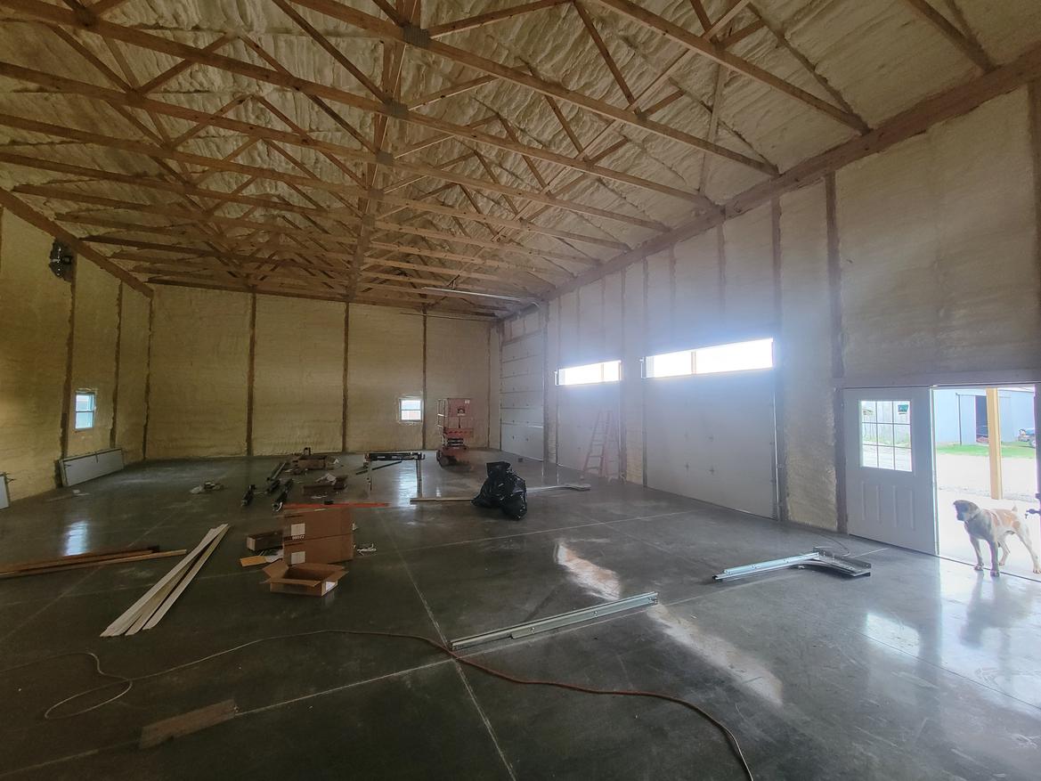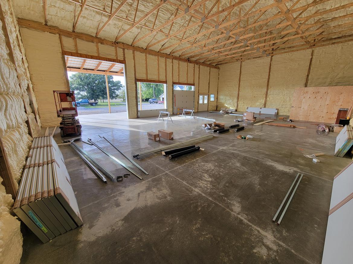 Looking very nice, i am sure you will enjoy it for years to come, especially the lift and heated floor. Are you planning on drywalling the exterior walls or some other thermal barrier material to separate the spray foam from the work space? The spray foam formulation may have an ignition barrier component, but I would hate for you to have a fire from welding sparks or other sources.