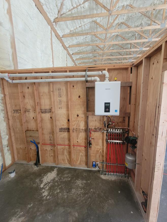 Heat will be via a Navien propane boiler that I hope gets installed in the next couple weeks.
