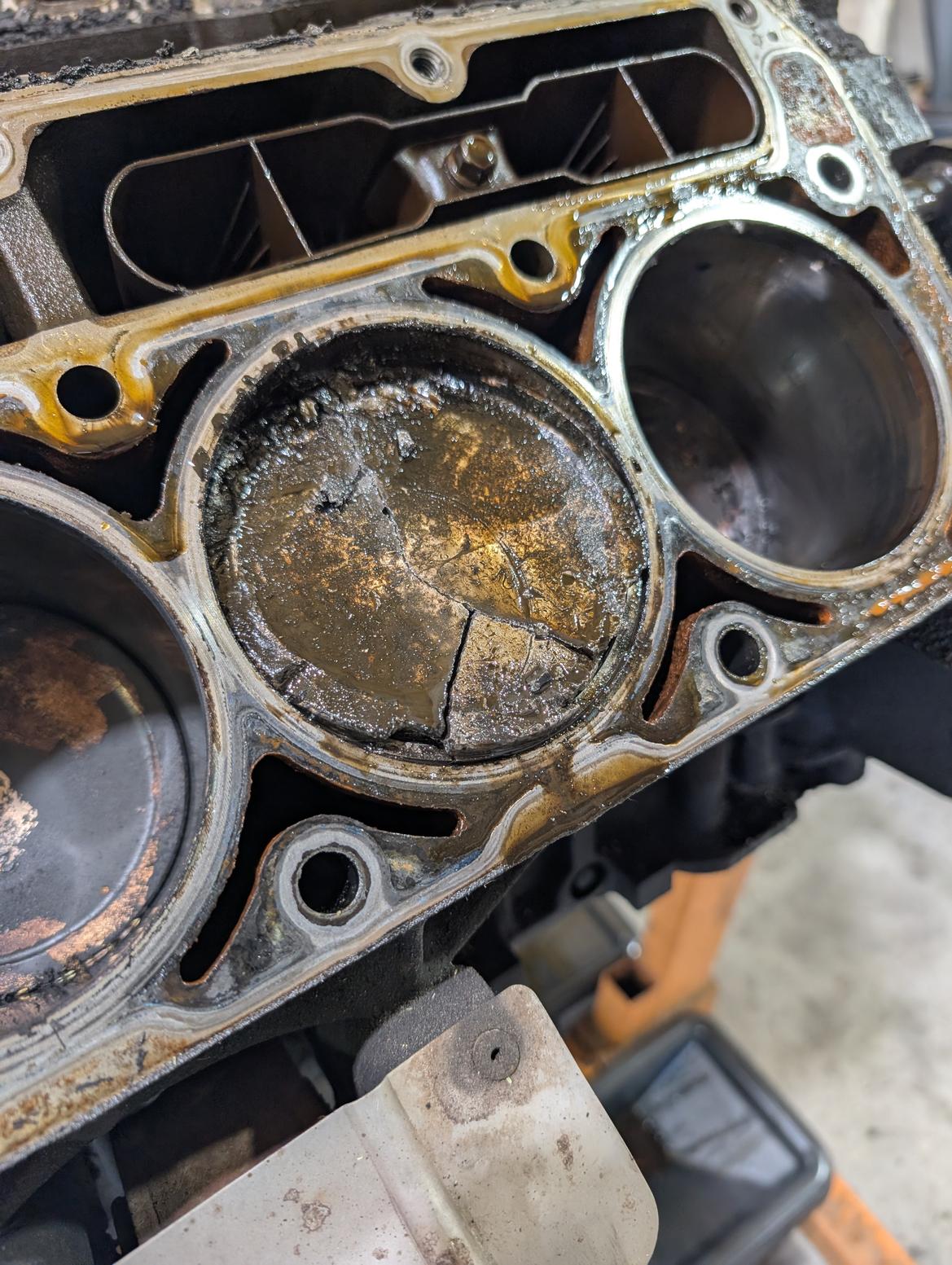 I've got a strange one to ask about here. Truck that belongs to a buddy of mine blew up a few weeks ago. Death knocking sounds. I went and got it on the trailer (of course it was 50 miles away when it went) and brought it back to my shop. Here's what it looked like inside: