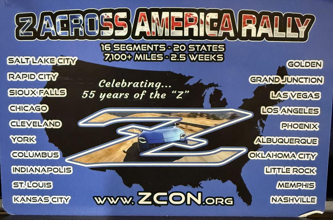 Z Rally - 7000 miles across the USA - last accomplished in 1995. Windy City Z Club has a Chicago to Cleveland, OH leg. We are stopping in South Bend, Indiana at The Tire Rack IF we can get TR marketing to return a call.....LOL.