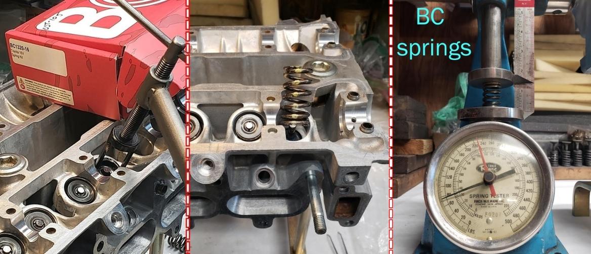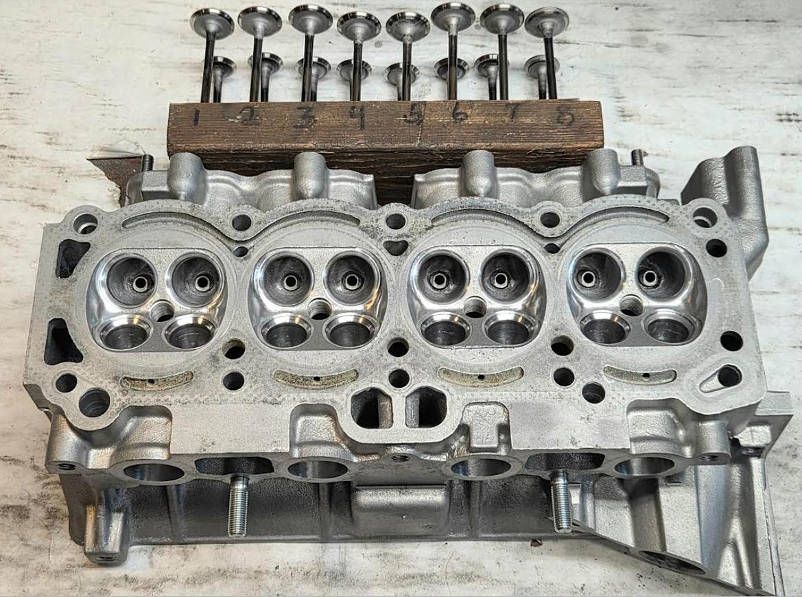 The surface gets machined .008" to get the chamber volume back down to 36cc. The head is assembled using new Brian Crower valve springs, and viton rubber valve seals.