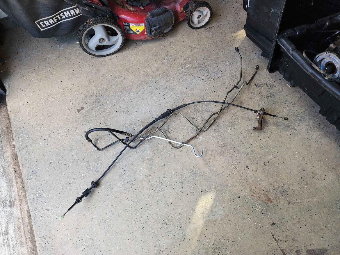 I can include all the transmission cooling lines, one of which is newer (these are for Dakota/Durango applications only) as well as the shifter cable. Stock torque converter is currently bolted to the transmission and will go with it.