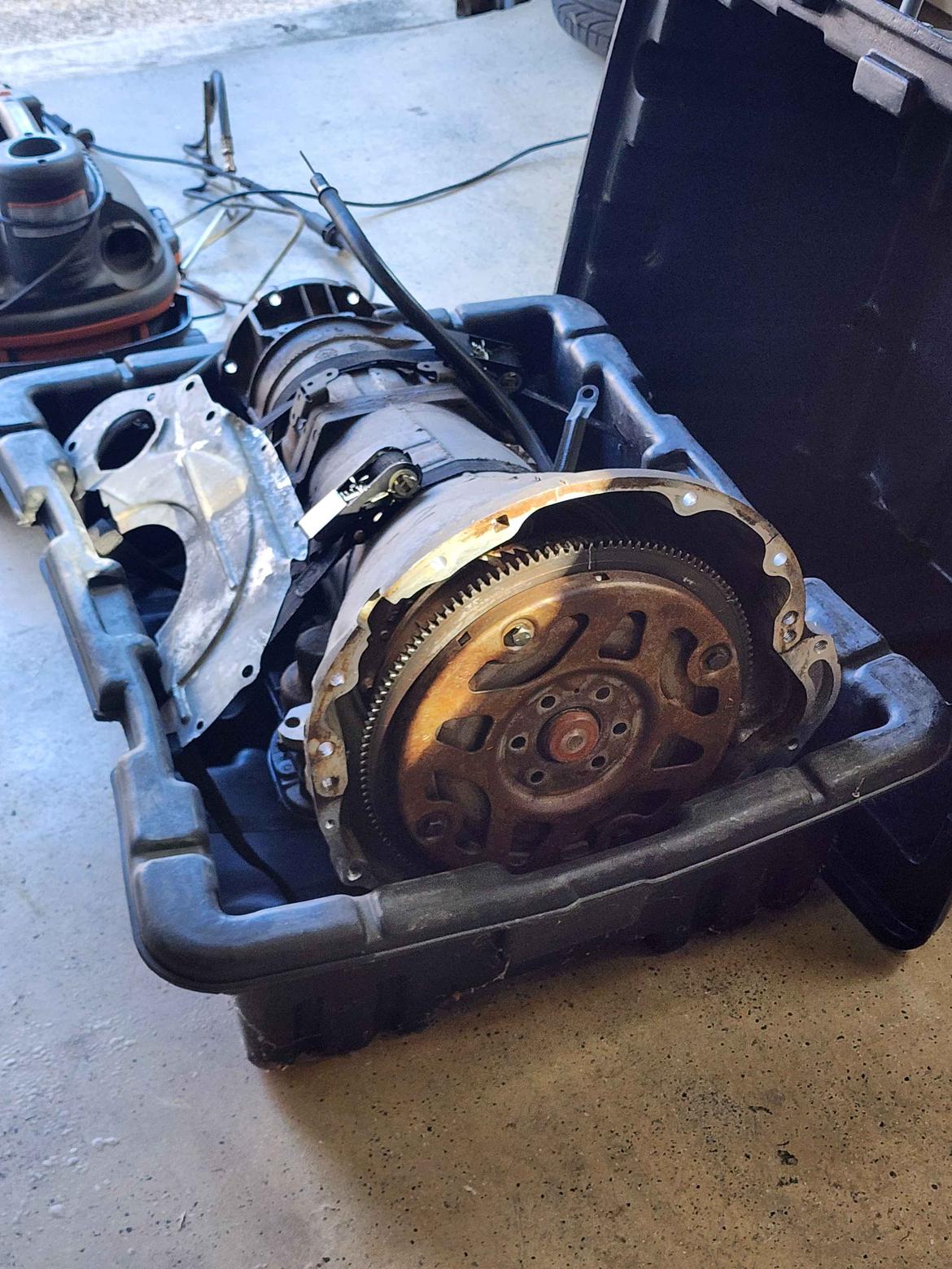 Since I've never been a huge fan of automatics, I've since swapped in an NV3500 and made the swap from automatic to manual. I now have this slushbox sitting in the box the NV3500 came in, and I'm sure it's still a good core or a good candidate for a rebuild and I couldn't bare the thought of just junking it if someone can use it. It is a 4WD transmission, and is a direct swap into a 1st gen Durango or 2nd gen Dakota with the 5.9, might fit the 5.2 as well if you want to replace the 44RE that came with those. The bolt pattern is for the Magnum V8s, it won't fit the later 4.7L V8 and I don't believe it'll fit the 3.9L Magnum V6 either.