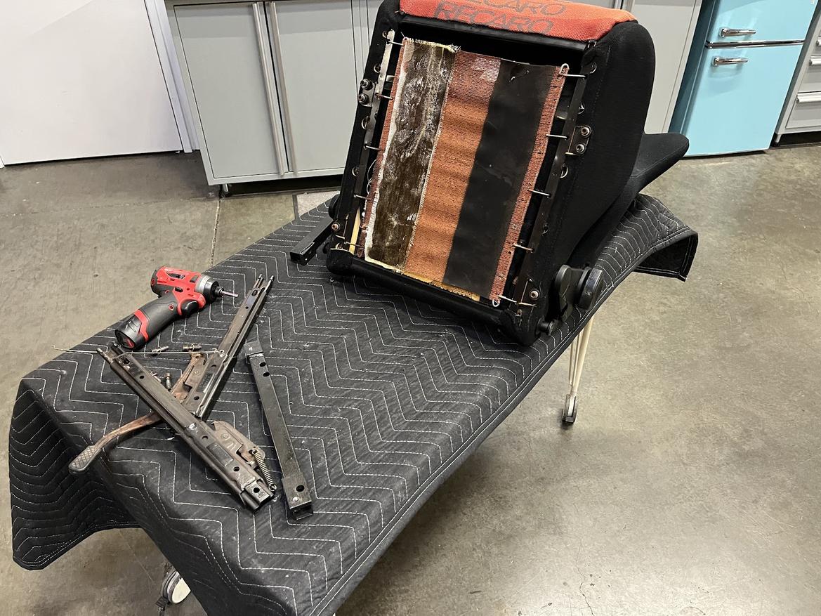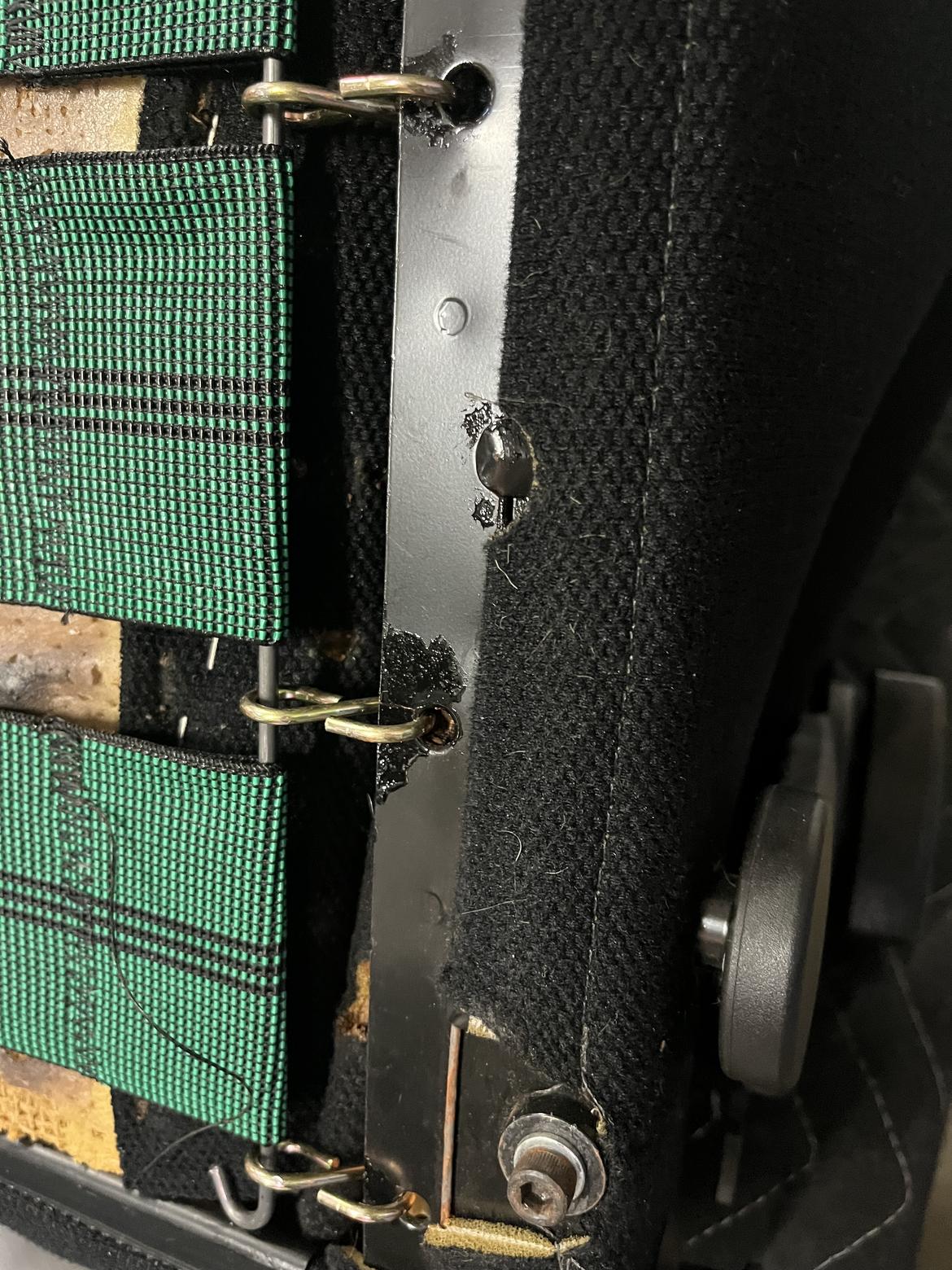 I just replaced the stretchy diaphragms (webbing) underneath the bottom cushions as the originals had lost most of their pliability and one of them was poorly repaired previously. The foam is such good shape I don't think the seats have seen a lot of miles. The tilt release mechanisms all work. While I was redoing the diaphragm webbing, there were a few spots of very minor surface rust on the metal frame that I cleaned up and applied POR-15. These were mostly around where the hooks for the diaphragms attach, and had worn down some of the original paint. The original paint was also black, so it won't be visible once the seats are installed.