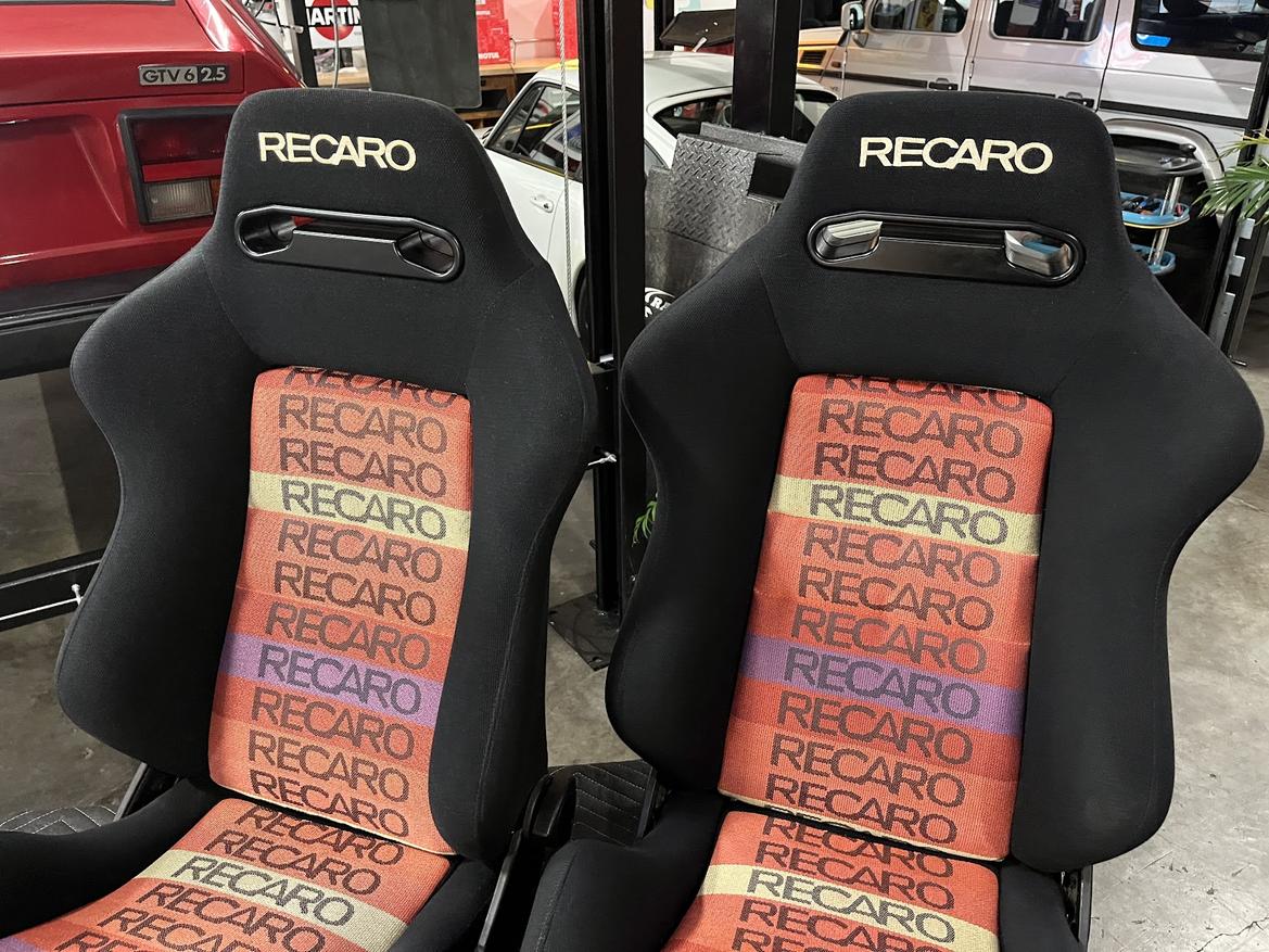 Genuine Recaros SRD seats in remarkable condition. These have nice deep bolsters, reclining seat back, and are lightweight. The upholstery is in amazing condition for their age!