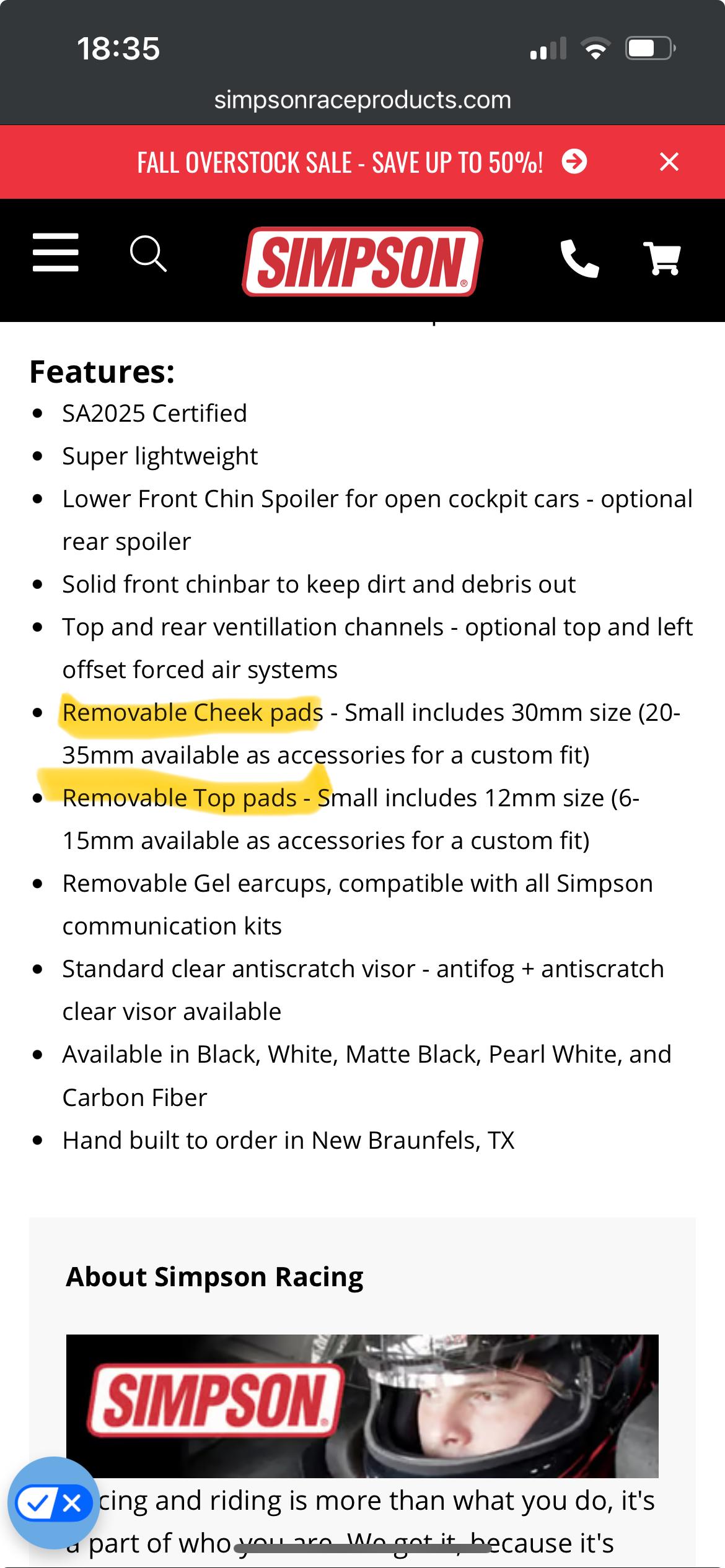 With respect to the Roux, I do agree that is a lot of great feature set for the price. One of the great things I love about Simpson is we still operate primarily out of our New Braunfels, TX location for helmet assembly and/or accessory upfit. What that means is you can order a Bandit, the comms, HANS anchors, etc and we can install it for you before shipping it out. We can also make recommendations for fit, and one of my initiatives for the new 2025 helmets is to make clear on the website which removable top and cheek pads come preinstalled with each size helmet. This way if you're like me and fall in between sizes you can swap out pads (or we can do it for you) and get the custom fit you're looking for. I highly recommend calling our sales team (also based in the same building in Texas) because if they don't have an answer for you they are steps away from the engineers or production staff who can answer.