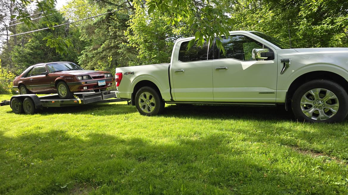 It's a 2021 F-150 Powerboost hybrid. The trailer is a homebuilt one that I bought about 20 years ago, 18', wood deck, brakes on one axle. In the time I've owned it, I've replaced more than half of the boards, installed tie downs, repainted it twice, rewired it twice, and replaced the taillights more times than I can count. It tows great, though.