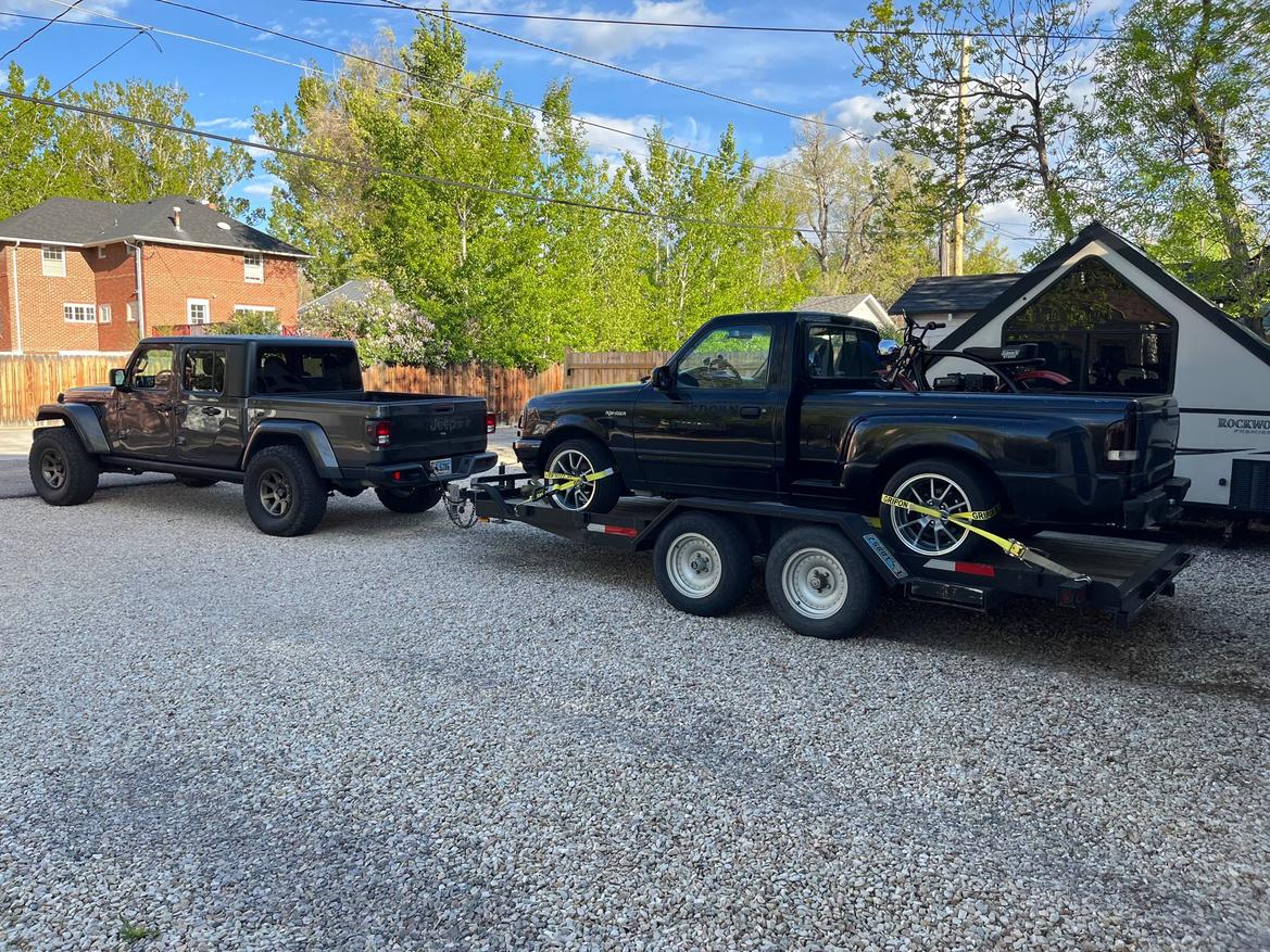 I got my first chance to try towing with my new truck last night! I am helping my friend fix up his 94 del sol VTEC that has been broken on and off for the past 10+ years. It has been mostly sitting since he moved out of his parents house in 2021 and didn't have the room at his apartment. I helped him get it started again last year, but it wouldn't rev past 4k rpm. We are thinking that the fuel pickup is likely clogged and causing a fuel pressure issue. He finally decided to let me bring the car to my house where I have more tools and storage space for it, and we will actually be able to get it running properly again! Plus my wife loves this car almost as much as her AW11.