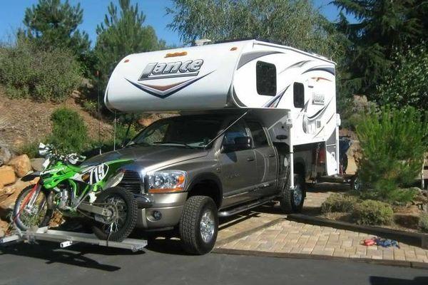 It's a big, heavy truck and a relatively lightweight motorcycle (350 Lbs-ish), so I could hang it off of the nose, but, I'm concerned about blocking my lights. On the back, I suppose that I could use a pivoting mount to make egress to the camper unit easier, but I'm not in love with either option. Has anyone done this? And what are your thoughts? I'd rather not pull a trailer.