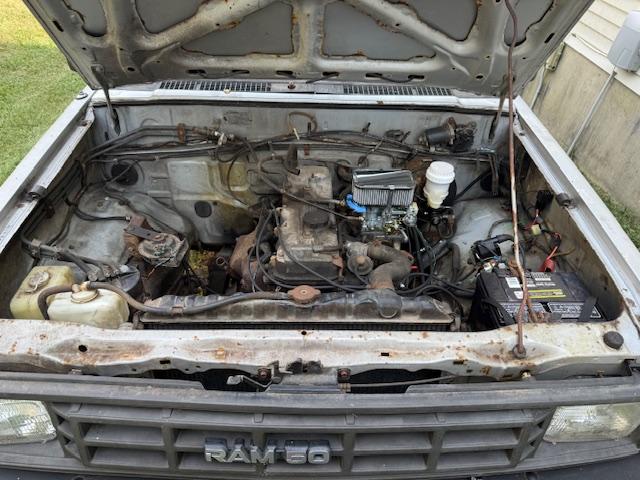 1988 Dodge Ram50 extended cab with a 2.6L and a 5 speed manual. Here's the build thread. For a TL/DR, I bought it after it had been sitting for years, got it running, but have not been able to properly bleed the brakes. Also, the cheap fuel pump I used died. A better quality pump is included in the parts that go with it, and should be able to be rigged to allow it to be driven onto a trailer.