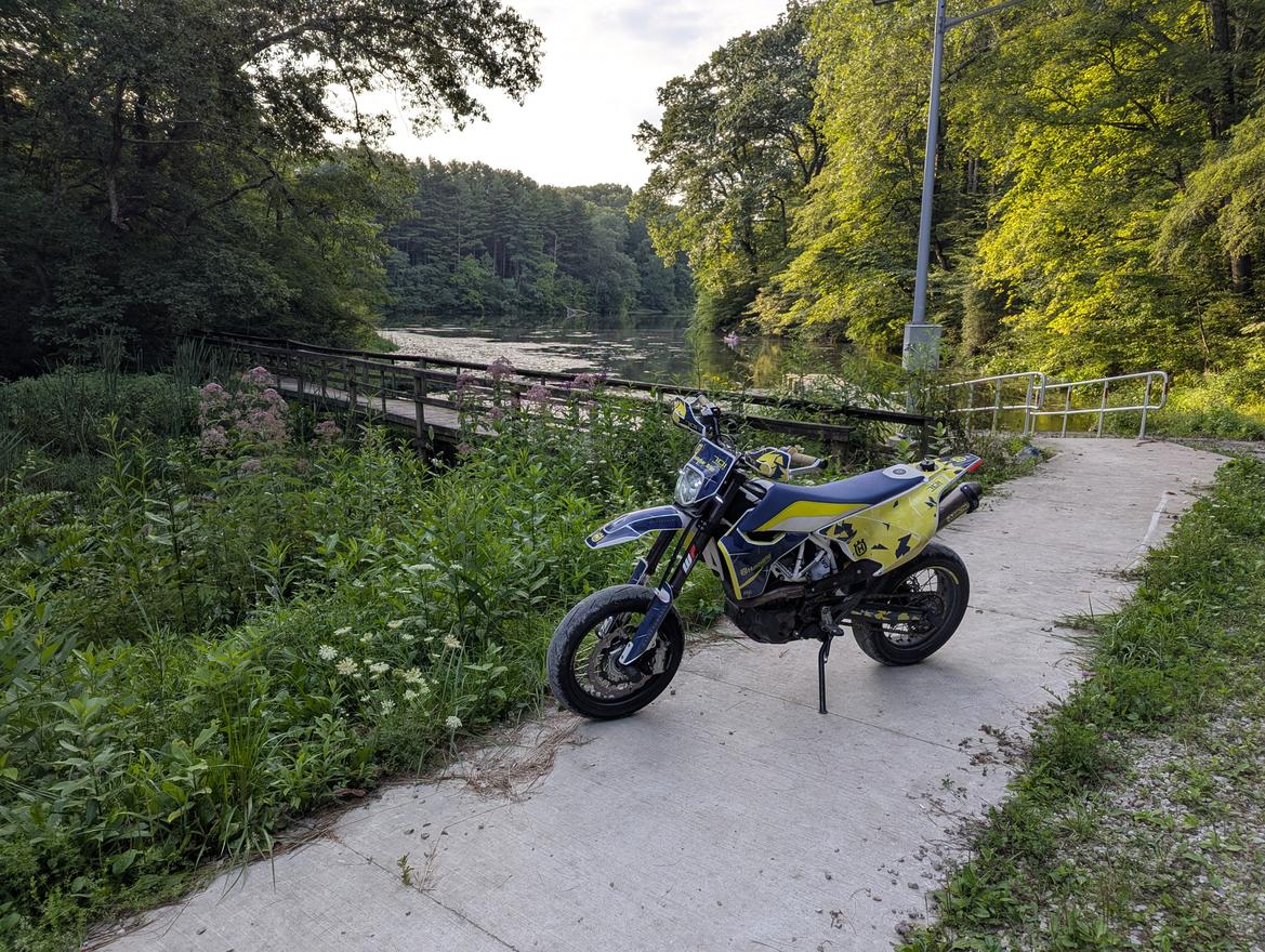 We had a XR100, 2 groms, CRF450X, and my 701, got to ride everything around there. XR100 is 100% stock minus a set of battlax BT45's. I'm a big boy and the bike was on bump stops soon as I got on it. It such a fun bike always shifting and ride it around without hitting the brakes and hucking it into the corners. I could ride this all day with some suspension setup for my weight. It was foot and knee drag fest on these.