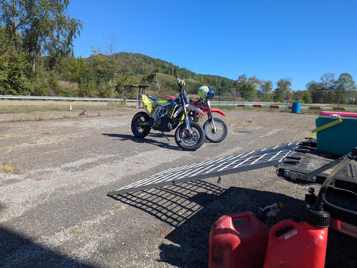 CRF450X is a normal Supermoto build. Tons of fun, super comfortable for me. Around that track 15-20min of riding is my max. The hard braking and holding on for dear life wears me out.