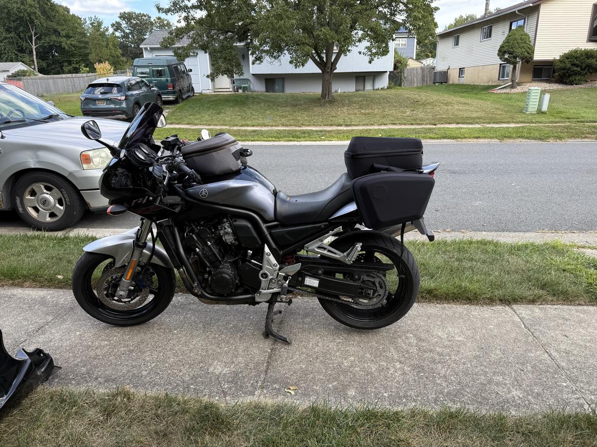 2004 Yamaha FZ1 for sale. Gen2 fairing, 55k miles, Metzler Z8s with plenty of tread, forks rebuilt, chain and sprockets done. 1 LED headlight,LED brake lights and turn signals, Puig dark windshield. Yamaha accessory tail bag, saddlebags and well used tank bag. Shop manual. 50/50 50', 50mph looks good, up close scratches and dings, but good solid bones. Great sport tourer, or do a track day for fun. $2500 or best offer. I need garage space☹️text if interested 302 540 6168