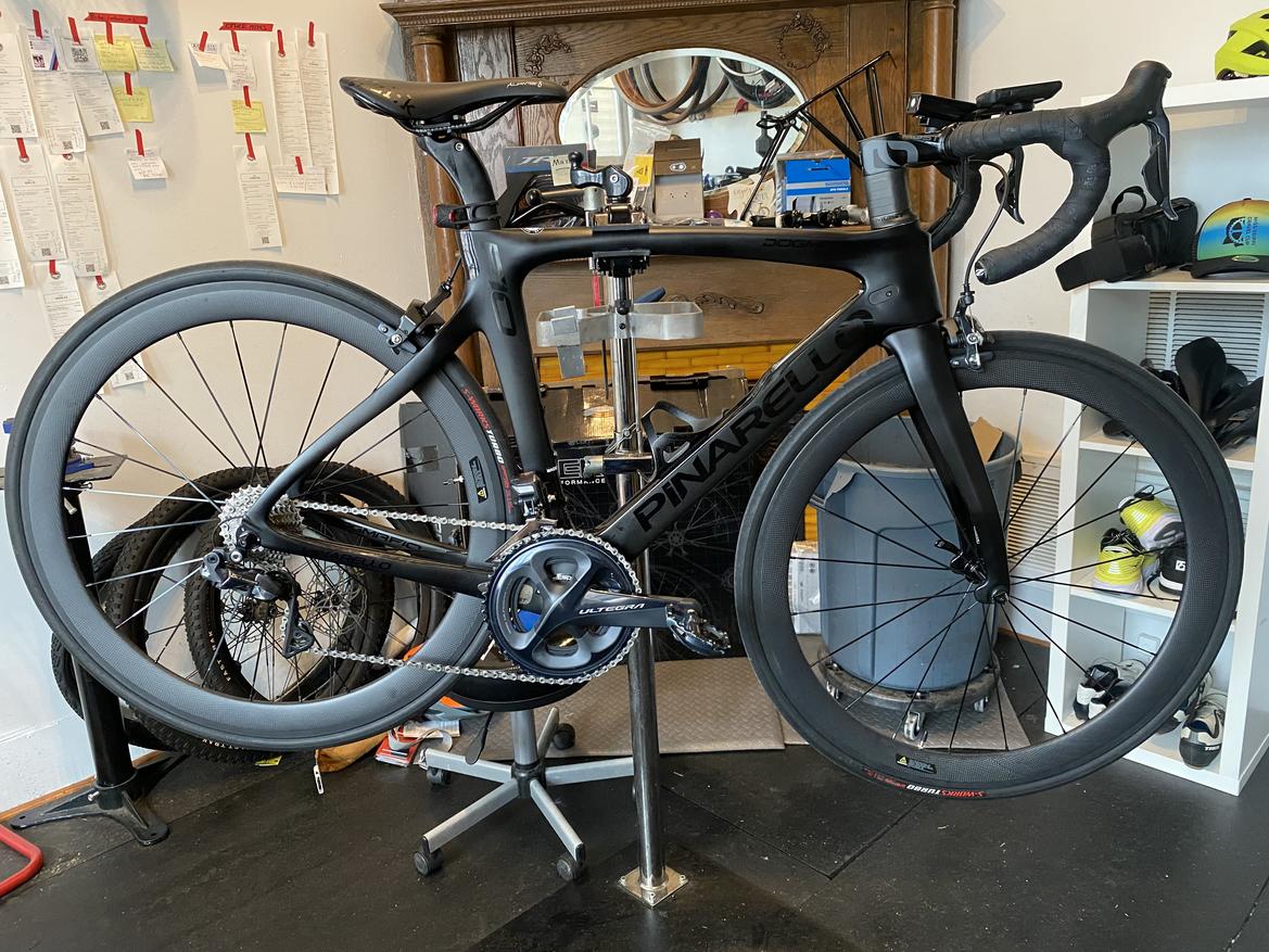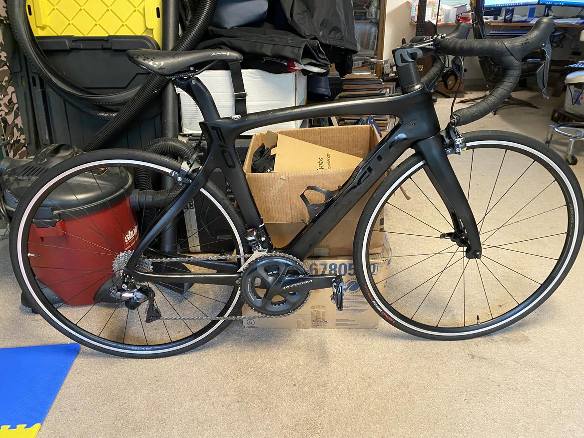 I'm not a roadie - at all - but a friend was selling this Pinarello & it's the first road bike I've ever felt comfortable on. He has a set of carbon aero wheels for it that he's going to get to me in the next week or 2. I weighed it right at 18lbs. I don't remember the model or year, but it has Shimano Di2 shifting with a brand new battery.