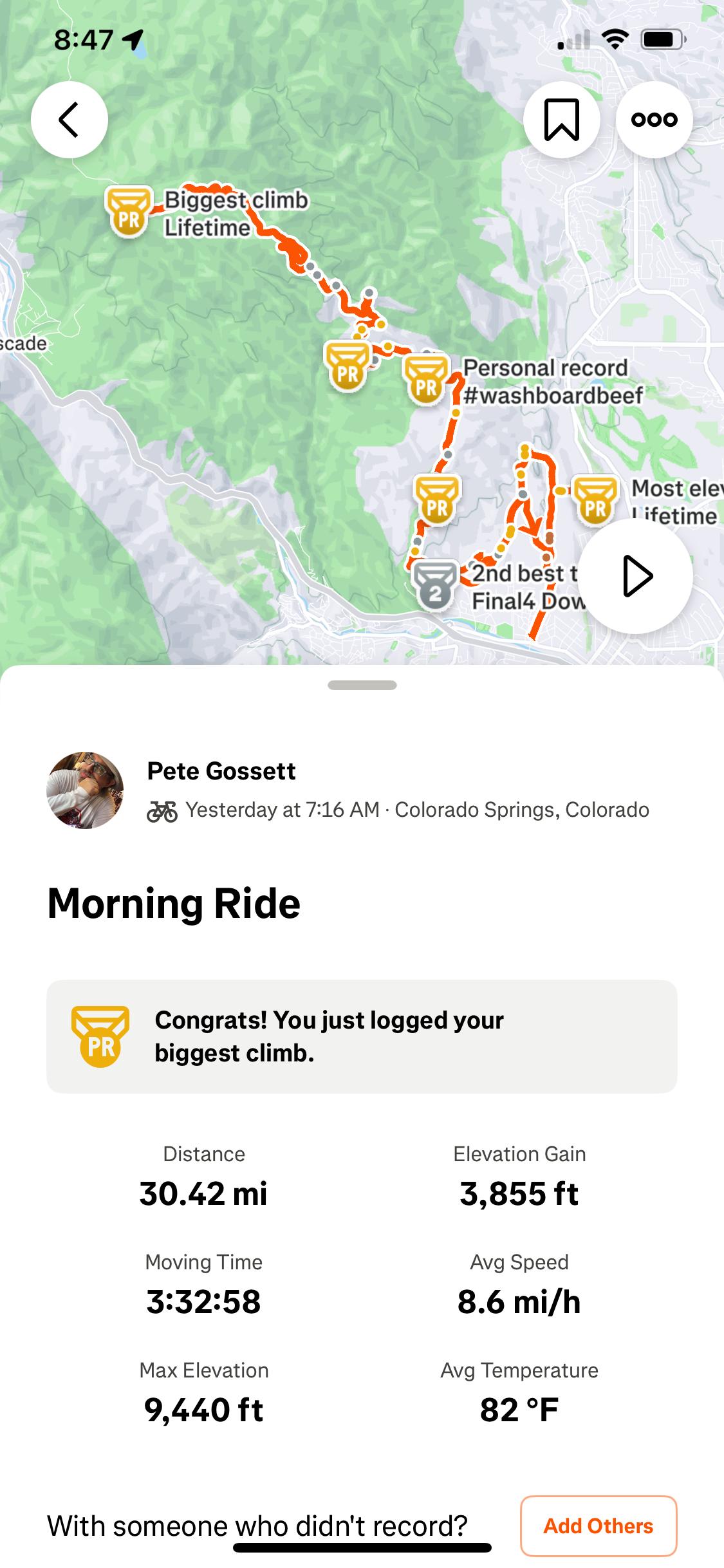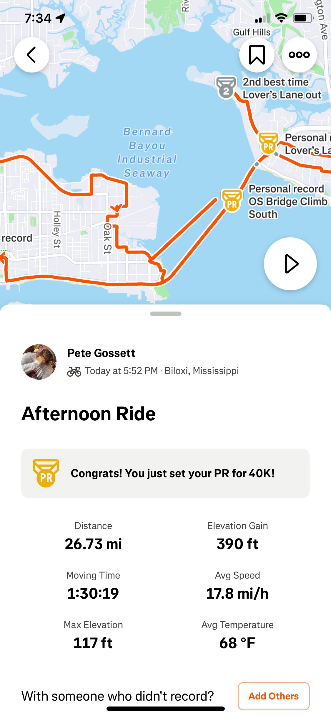 ...and I unintentionally set 2 new PRs beat my previous highest average speed for the ride by 1.6mph. This bike feels like I'm cheating.
