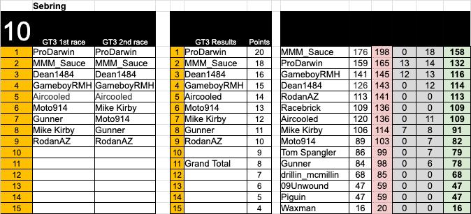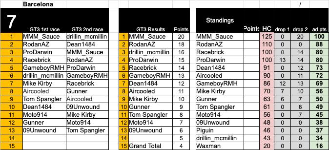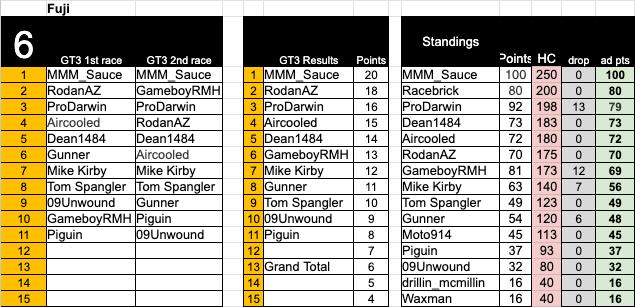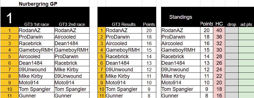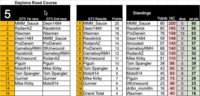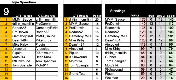 Drops: One drop per driver will be allowed if the series goes up to 6 races. Lowest point finish(s) for series will not be counted. If the series has more than 6 races, 2 drops are allowed.