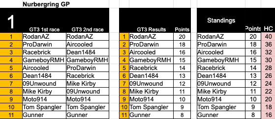 Race Format: Each track will be run twice on it's race night. Each race being 15 min. First race positions are based on qualifying. Second race is an inverted grid of the first race results.