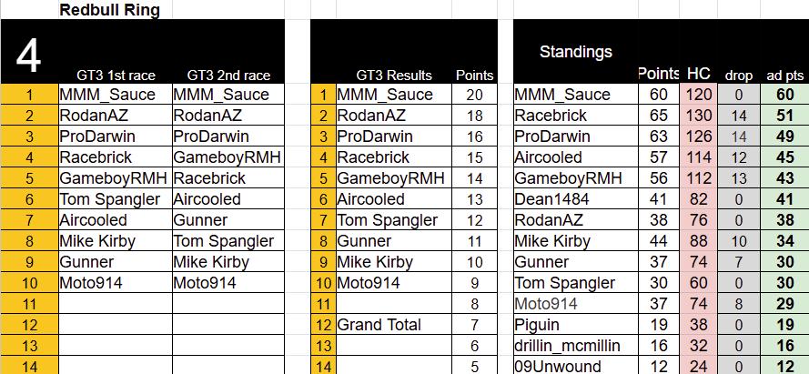 I will be out of town for tomorrow's race. I will be leaving the server up. If pro logs in as an admin then he can advance the sessions etc. If something goes wrong we can run it next week. The biggest thing will be setting up a server and assigning the cars and the HC to people. Because of this having some one else host will be challenging.