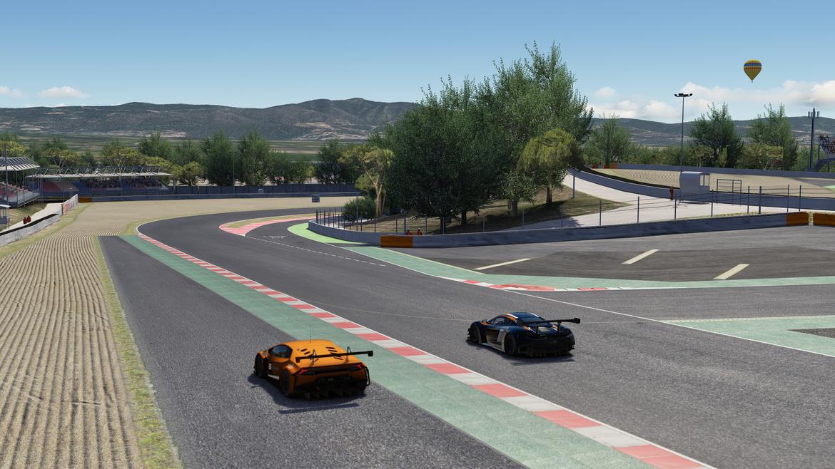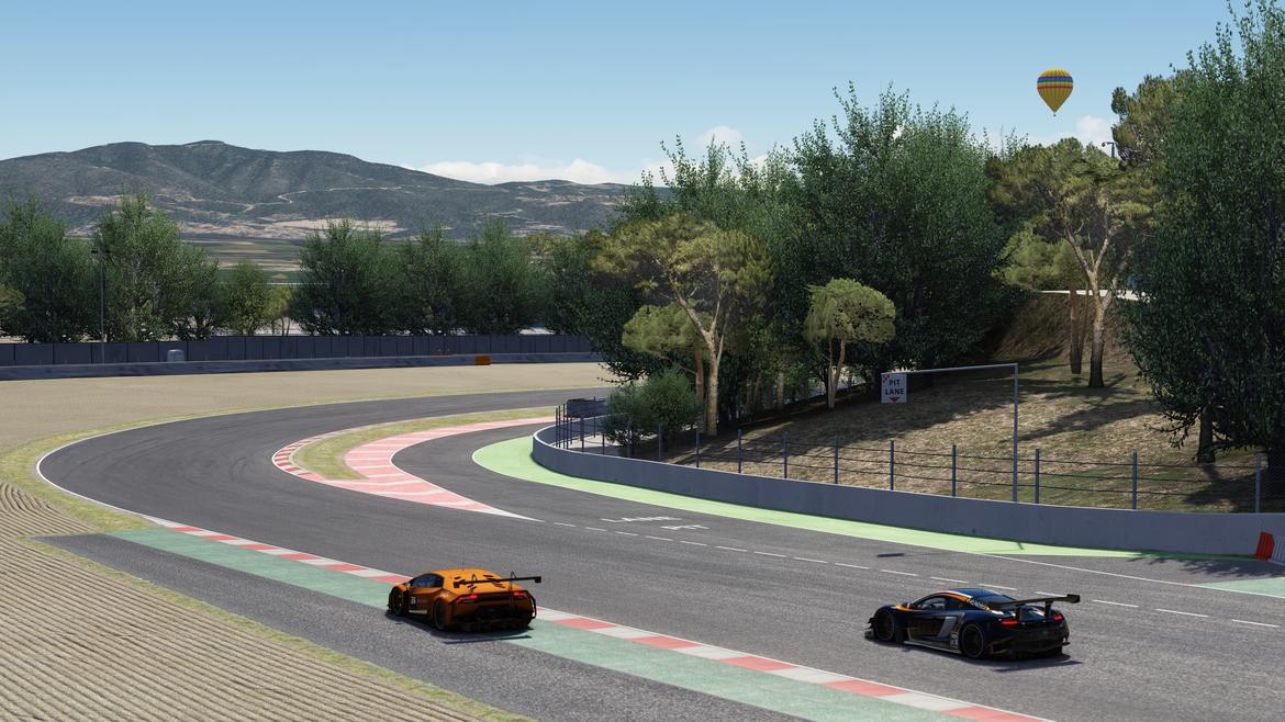 Left rear gets melty at Barcelona.... I like the track, but the Lambo doesn't seem quite as good here as it's been so far. Try putting some wing back in... seems to help.