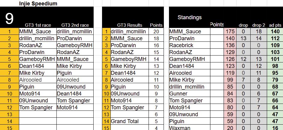Results and Standings. A very close race for 2nd between Darwin and Racebrick. 4th through 7th is pretty close also.