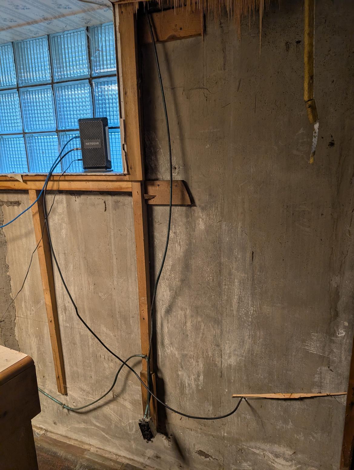 It's like 80 feet total from the pole to the house (60) then down the wall (15) and into basement where the modem is.
