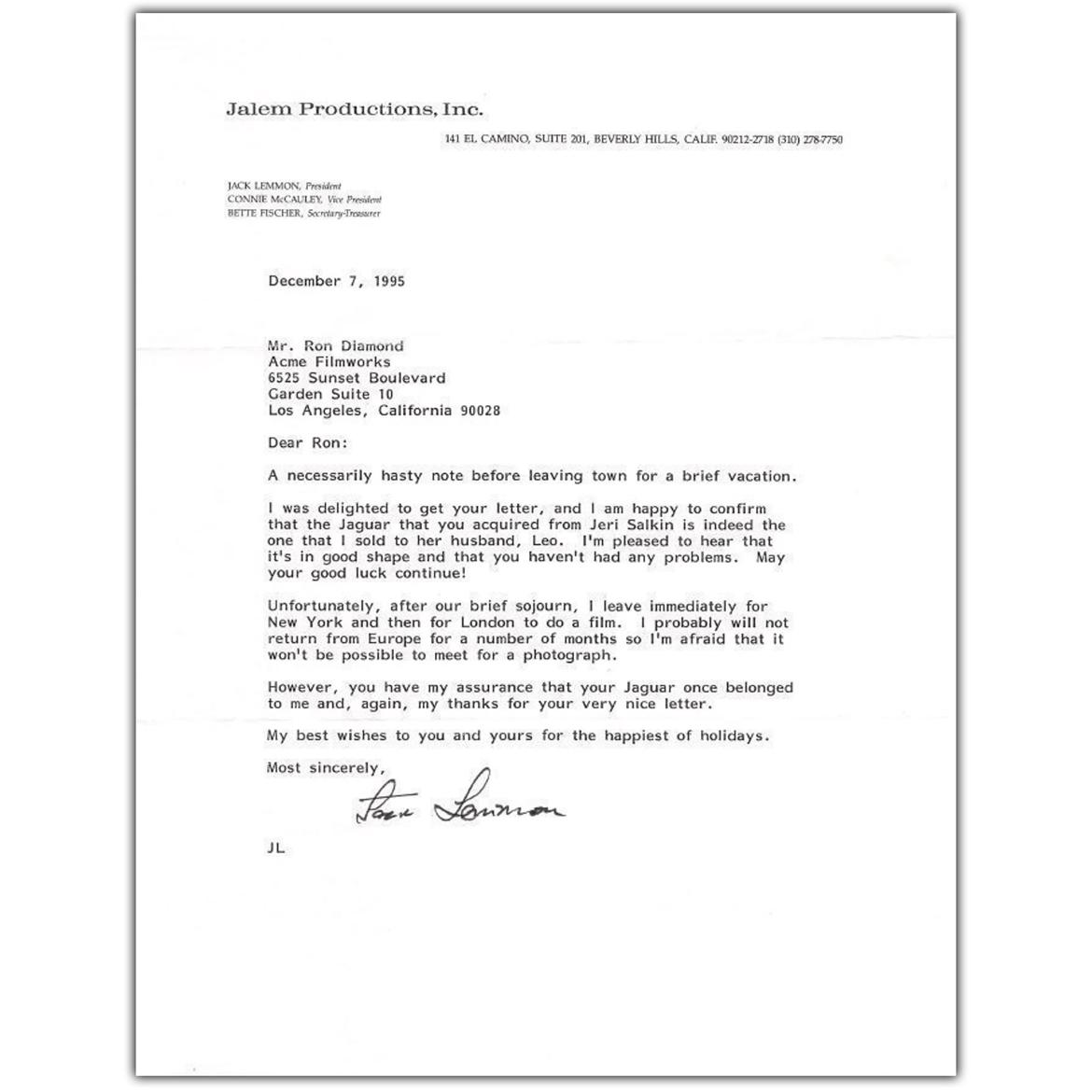 Now, with its third owner, the Jaguar shows fewer than 72,000 miles from new and is accompanied by an original letter from Jack Lemmon, confirming that the car was his.