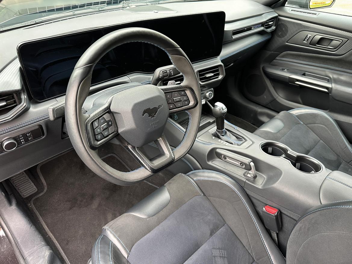 Brakes are up to the task–Brembo calipers pinch beefy rotors–while the relationship between the seat, pedals and steering wheel has been improved over past Mustangs. The 10-speed automatic, though, is not up for track use.
