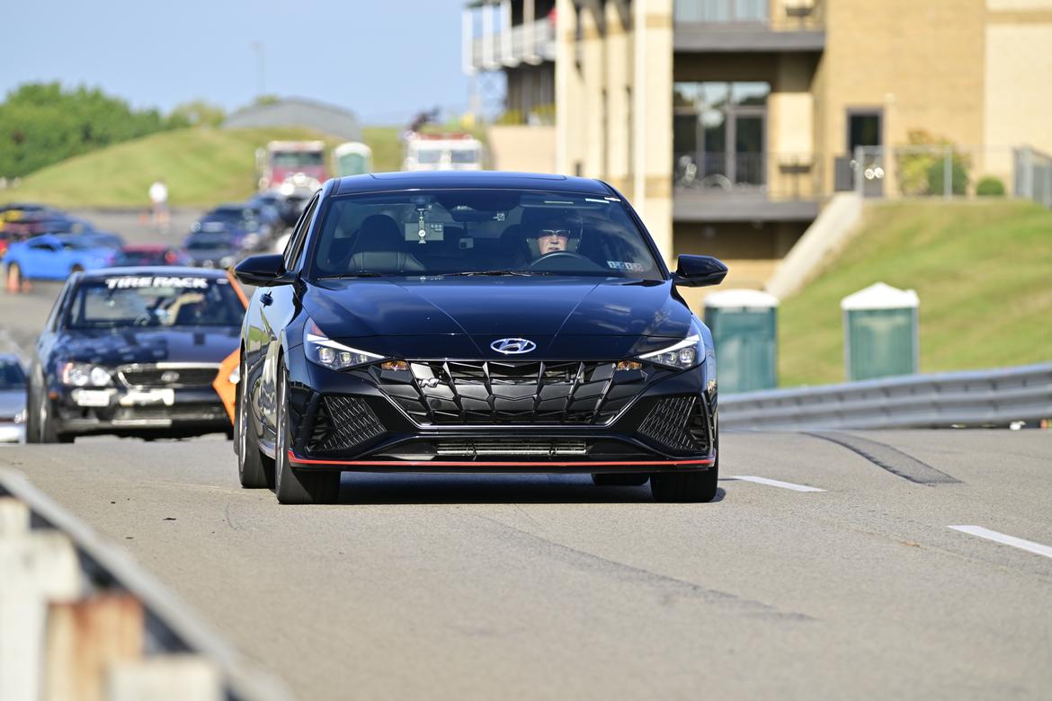 A PR person from Hyundai told us that they were poised to enter IMSA competition and take on the Civic Type R in the touring car ranks. Okay, I said to myself, everyone needs a goal, no matter how lofty it might seem. I kept that thought to myself. Manners and all that.