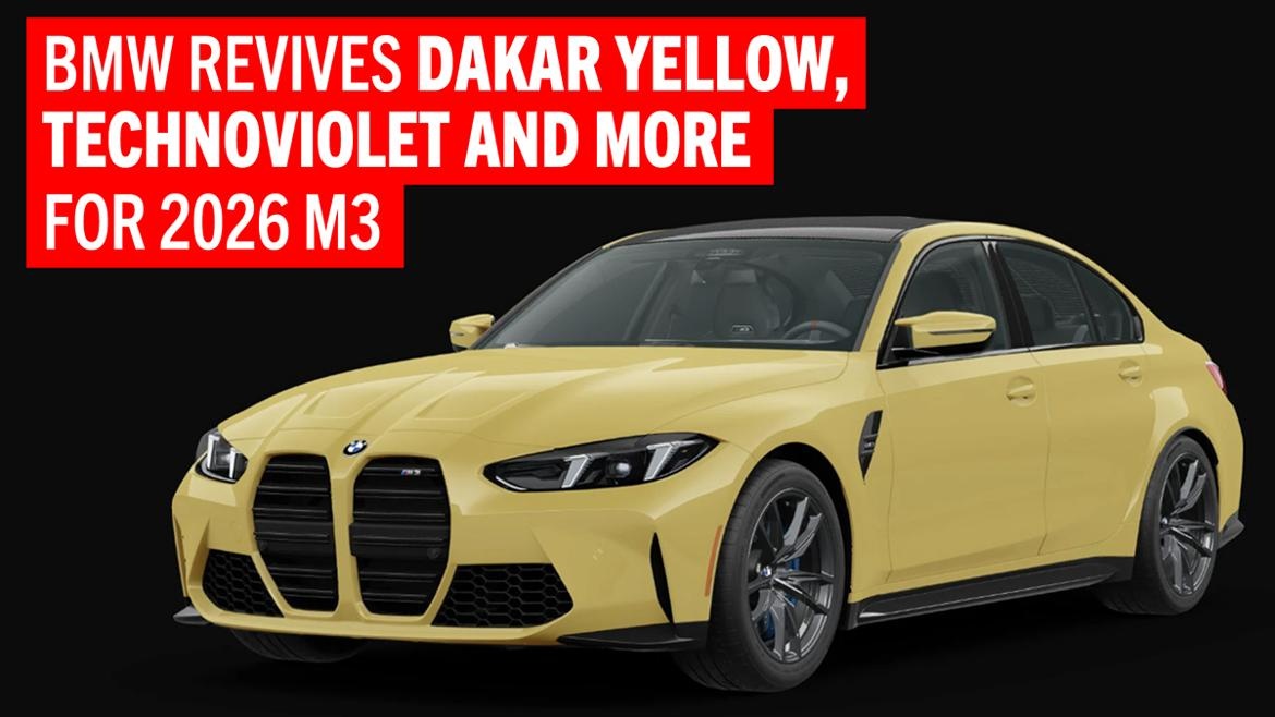 Dakar Yellow, Imola Red, Laguna Seca Blue and Technoviolet all make a return for 2026 as paint options for the latest M3.