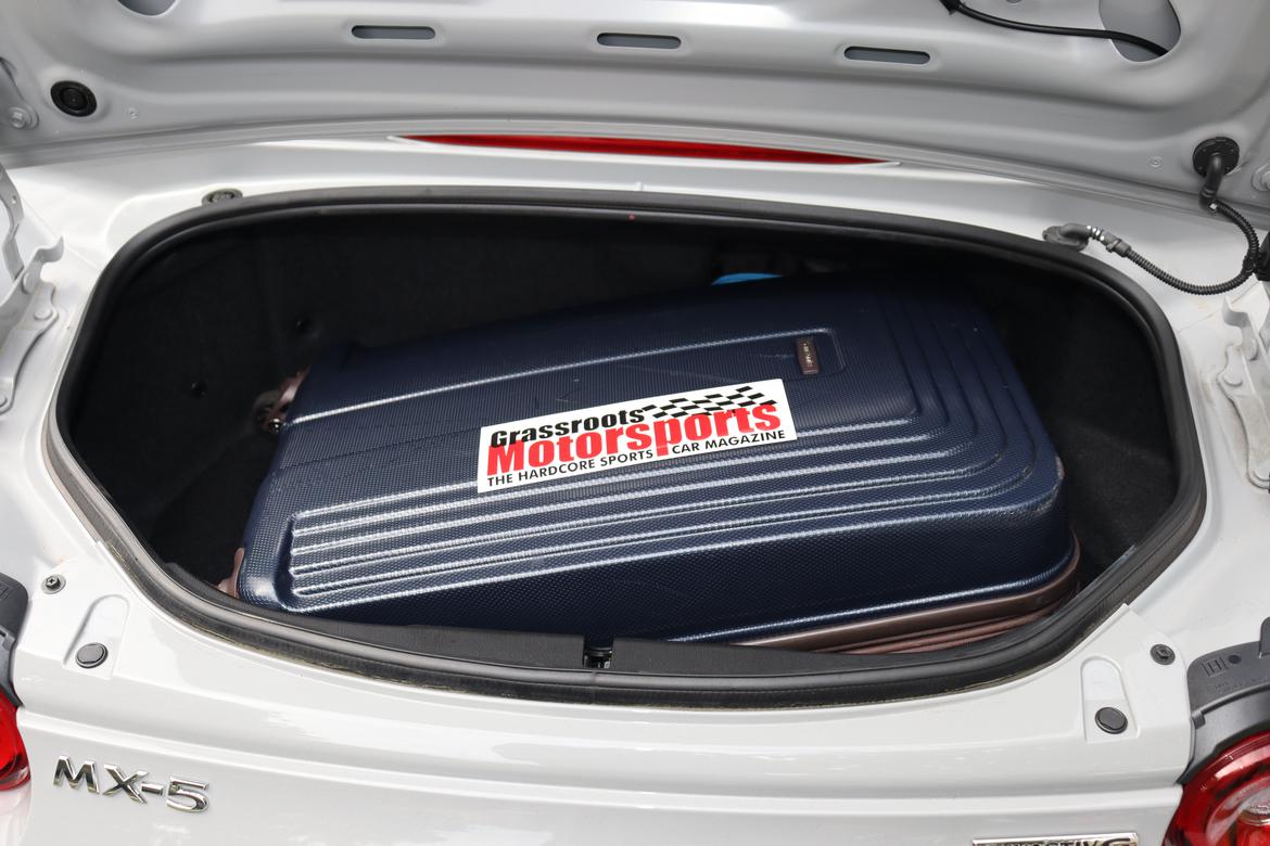 Travel far with the Miata? For a weekend, even with my prima donna needs (not my wife’s), yes. For a week, that trunk gets awfully small. Likewise, it might not fit a 40-pack of water, but a 24-pack is no problem. The trunk works for small tasks, but it’s not going to support major house renovations. (I think the trunk would hold a chainsaw, though.)