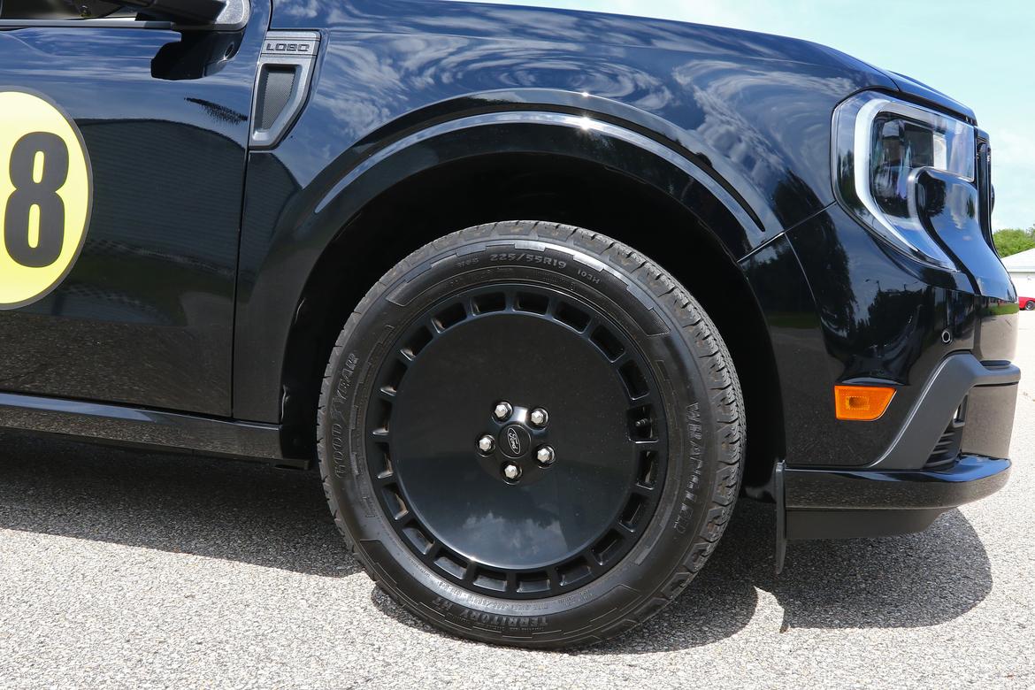 Here, though, they’re 19 inches in diameter. Despite the truck’s mission statement, they come wrapped with Goodyear Wrangler Territory HT tires: mud and snow rated with a 680 treadwear rating.