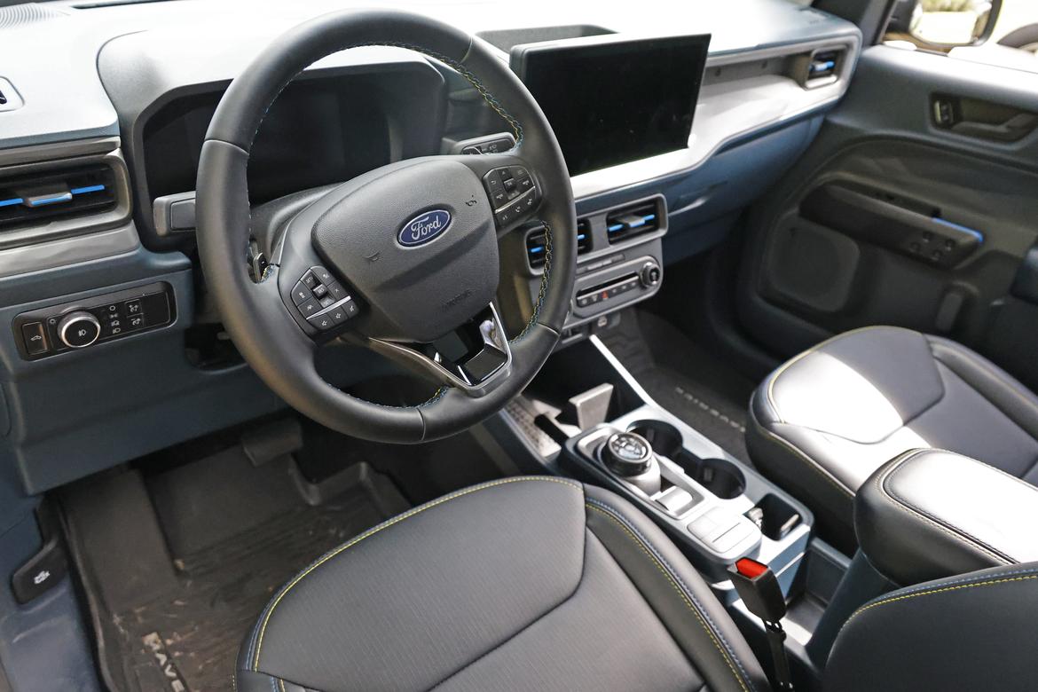 First real turn: The truck turns to the left, and I’m sliding to the right. Despite the sporty look, the seats still don’t offer a ton of lateral support. Likewise, tires are also sorely lacking grip.