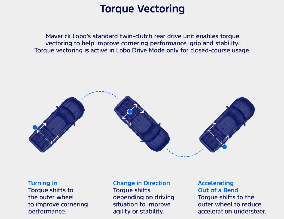 Lobo mode is meant only for closed courses because it activates the truck’s torque vectoring and reduces the capability of the stability control system. (Think about Lobo mode as the Maverick equivalent to Mustang track mode.)