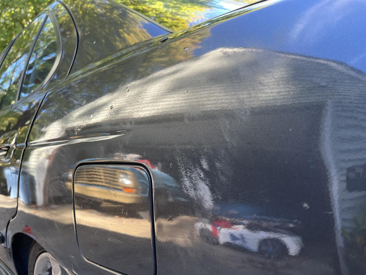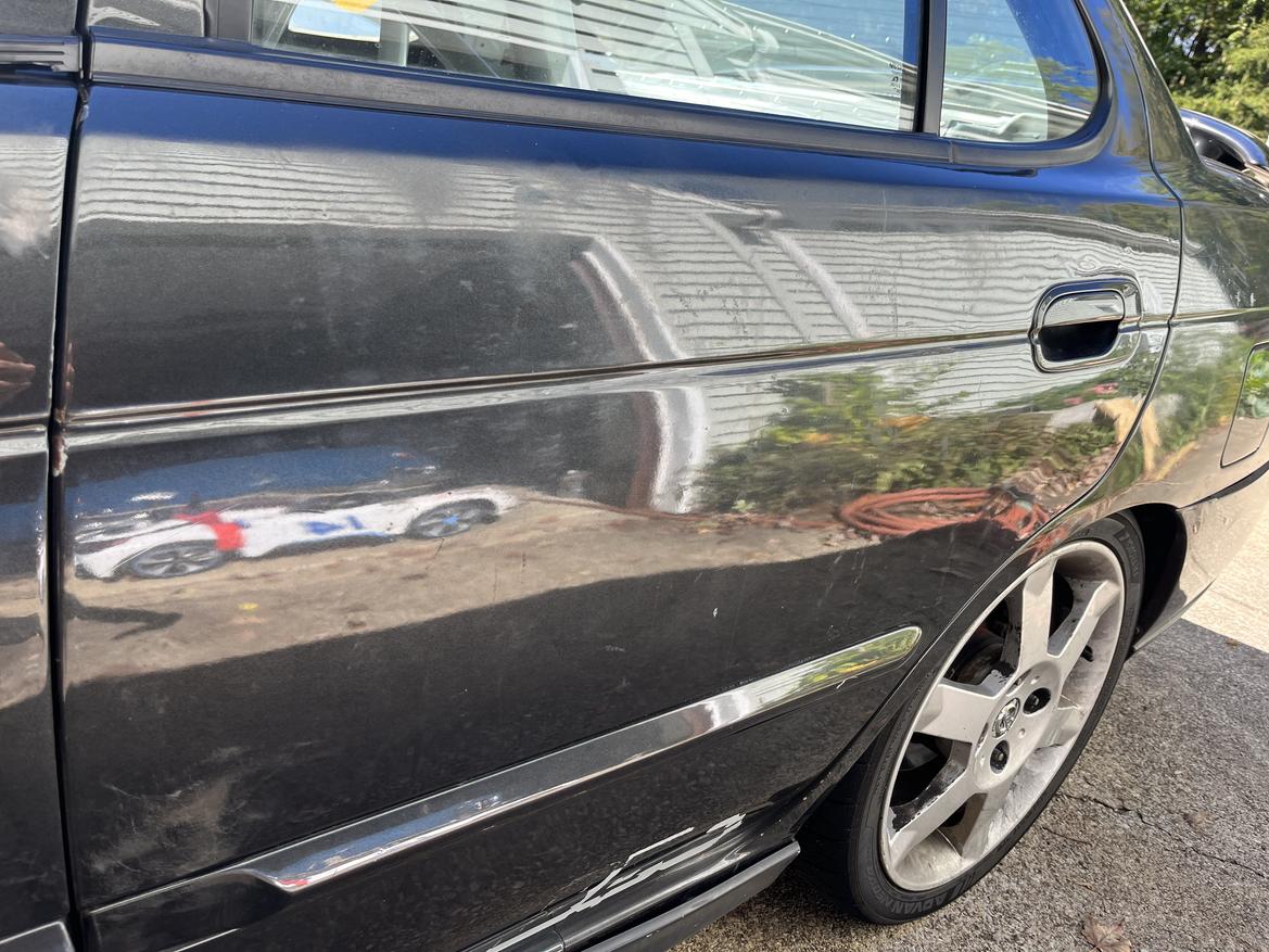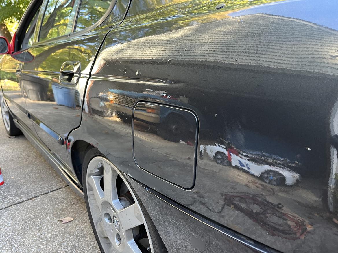 It needs so much help in the cosmetics department. The huge dents (and ripped open holes) in the rear floors should be fixed, the hood needs to be un-dented (maybe strengthened), the paint has been ripped off in places by vinyl and it just generally looks worse for wear.