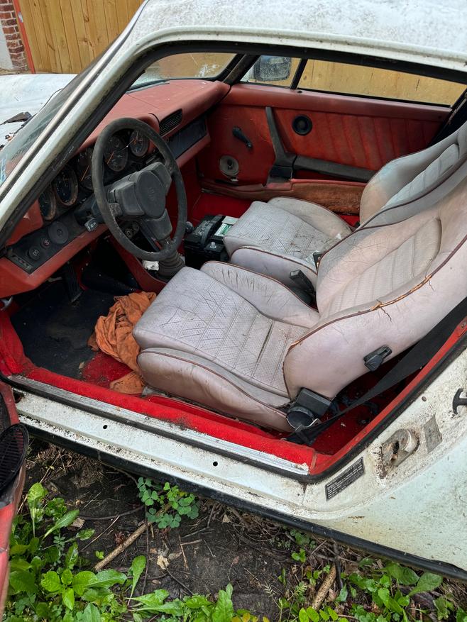 Car as found, 1977 911S coupe, sunroof, factory airconditioning and sport seats.