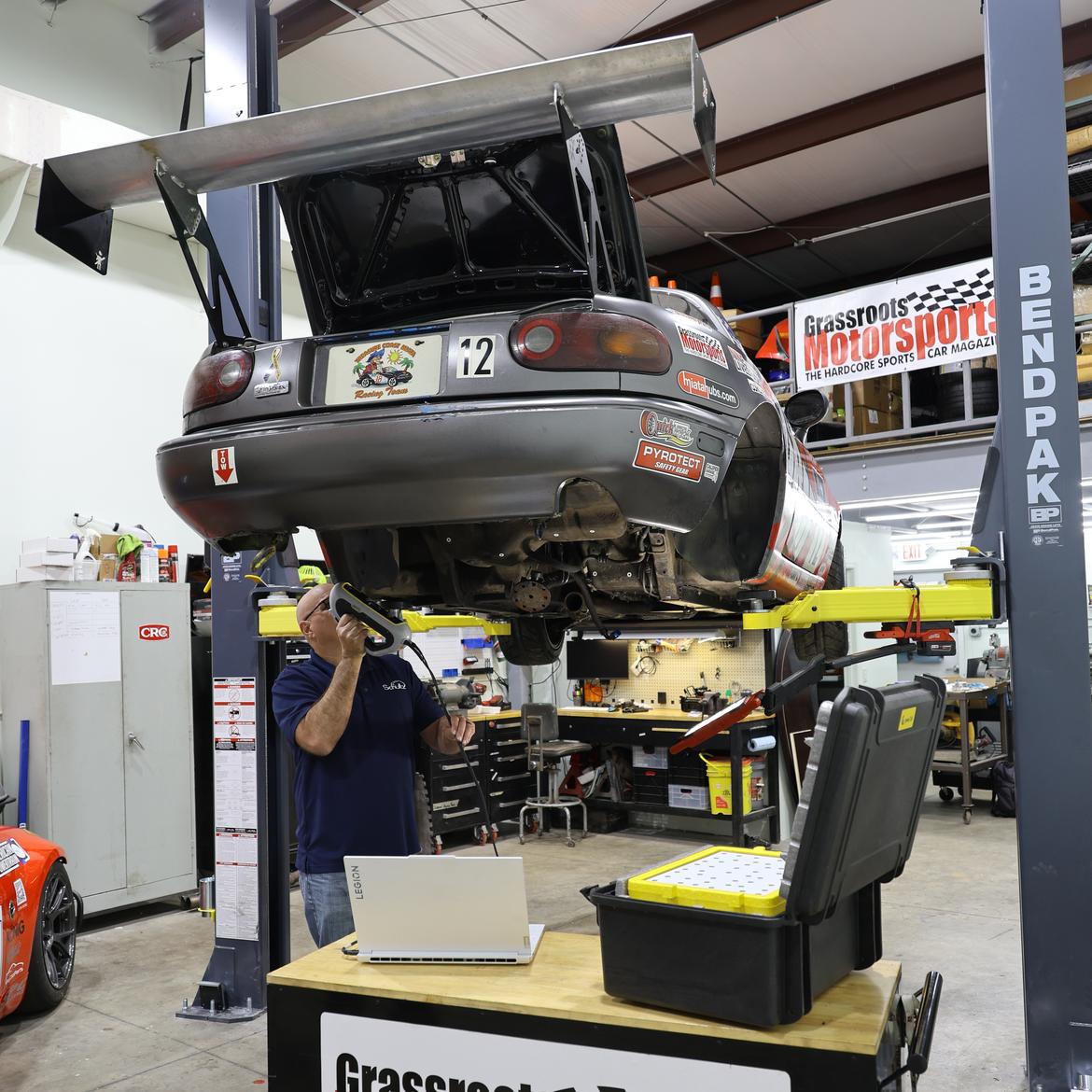 We penciled “scanning day” onto our calendar, yanked the car’s rear subframe out of the way, then watched as Rob showed up in a crisp polo shirt, opened up his gaming PC, and waved a $6000 Peel 3 scanner around the car and then around its stock tank. Slowly, the car appeared in the computer in a ritual that looked less like building a race car and more like building a spaceship.