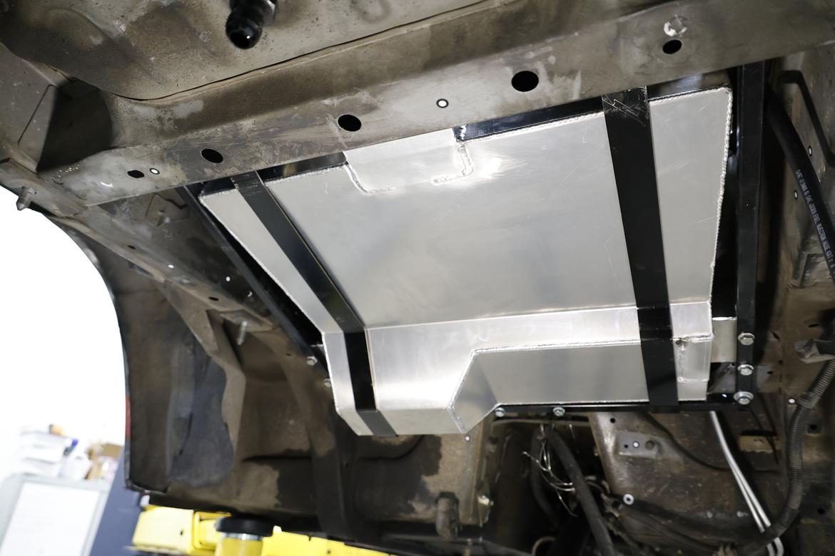 The final design is composed of three key parts: a steel frame that supports the tank and bolts directly to the OEM tank mounts; an aluminum tank that holds the bladder; and an SFI-approved, ultrasonically welded, custom, fire-retardant bladder that goes inside the can and holds the fuel.