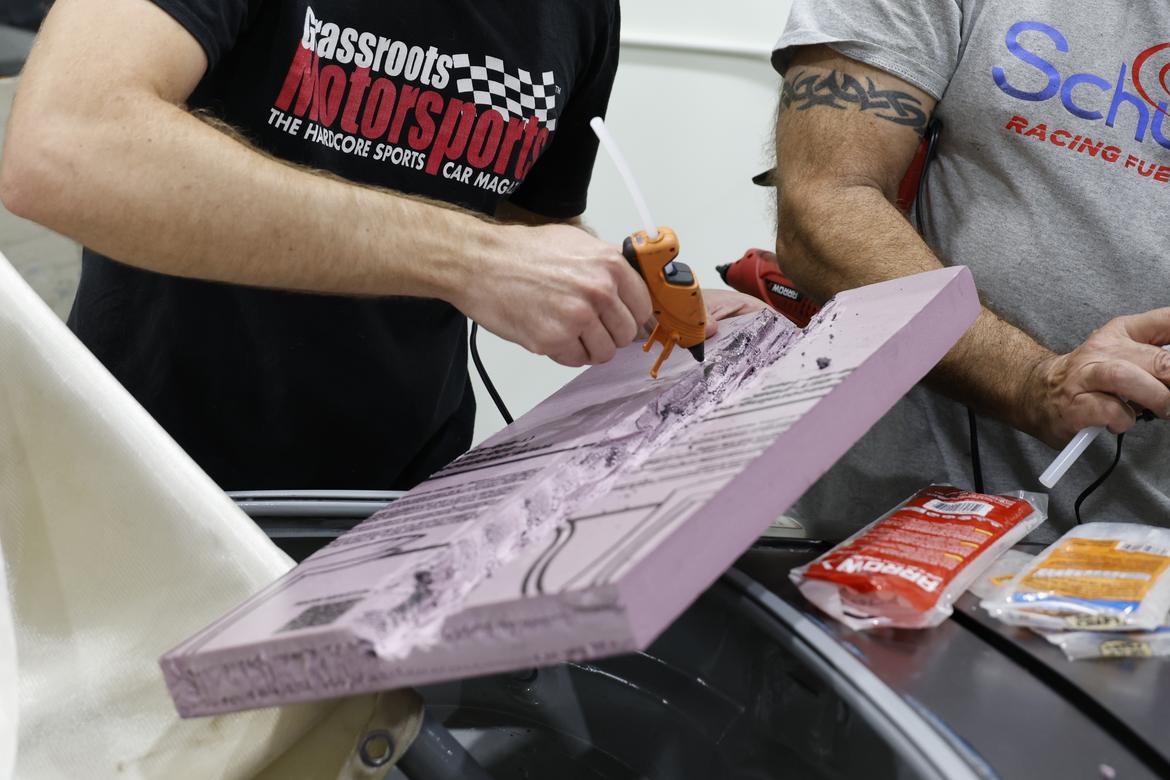 Though the heavy lifting happened in the computer, Rob wanted to do an old-school test, too: putting foam blocks in the car to make sure the computer matches reality.