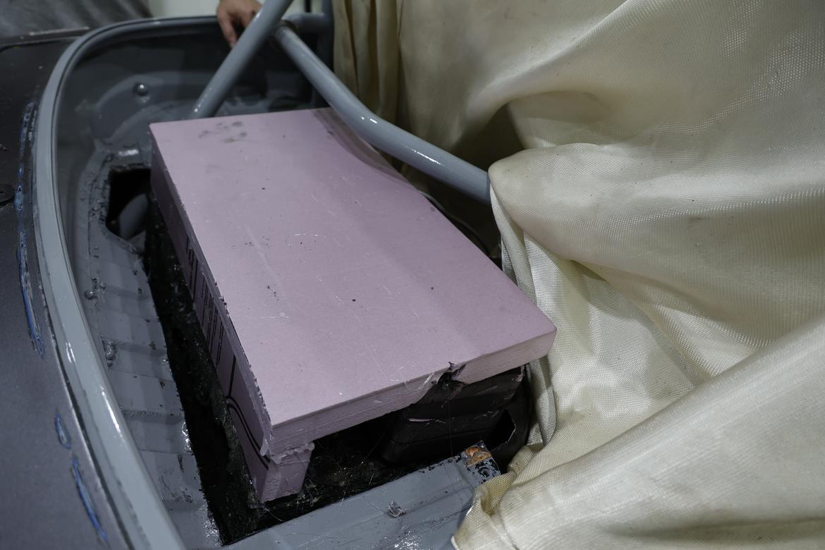 He brought an assortment of foam blocks representing different capacities, cut to roughly the shape and size of the finished cell, and had us sit in the car to test run them.