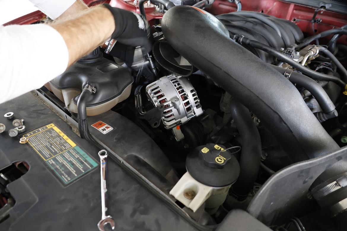 This would be the second alternator we’ve recently replaced in the Mustang–we killed the first one at the FIRM not too long ago. While the alternator looks difficult to reach, removing the unit is easy once the cold-air intake is disconnected. We can now replace an alternator in about half an hour.