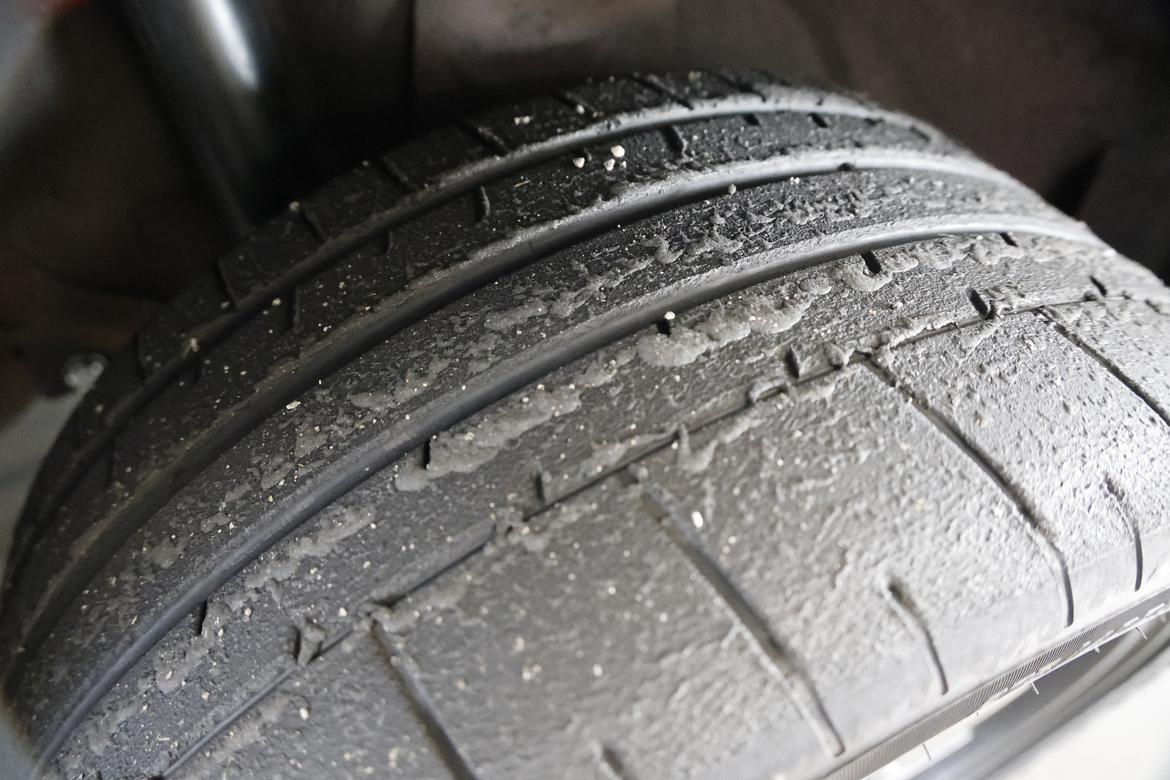 The track surface at Pitt Race proved to be particularly punishing on tires, for both the Mustang and our BMW 435i. Before the Mustang’s next big road trip, we’ll have to fit some fresh rubber. The wear is even across the face, but there just isn’t much tread left.