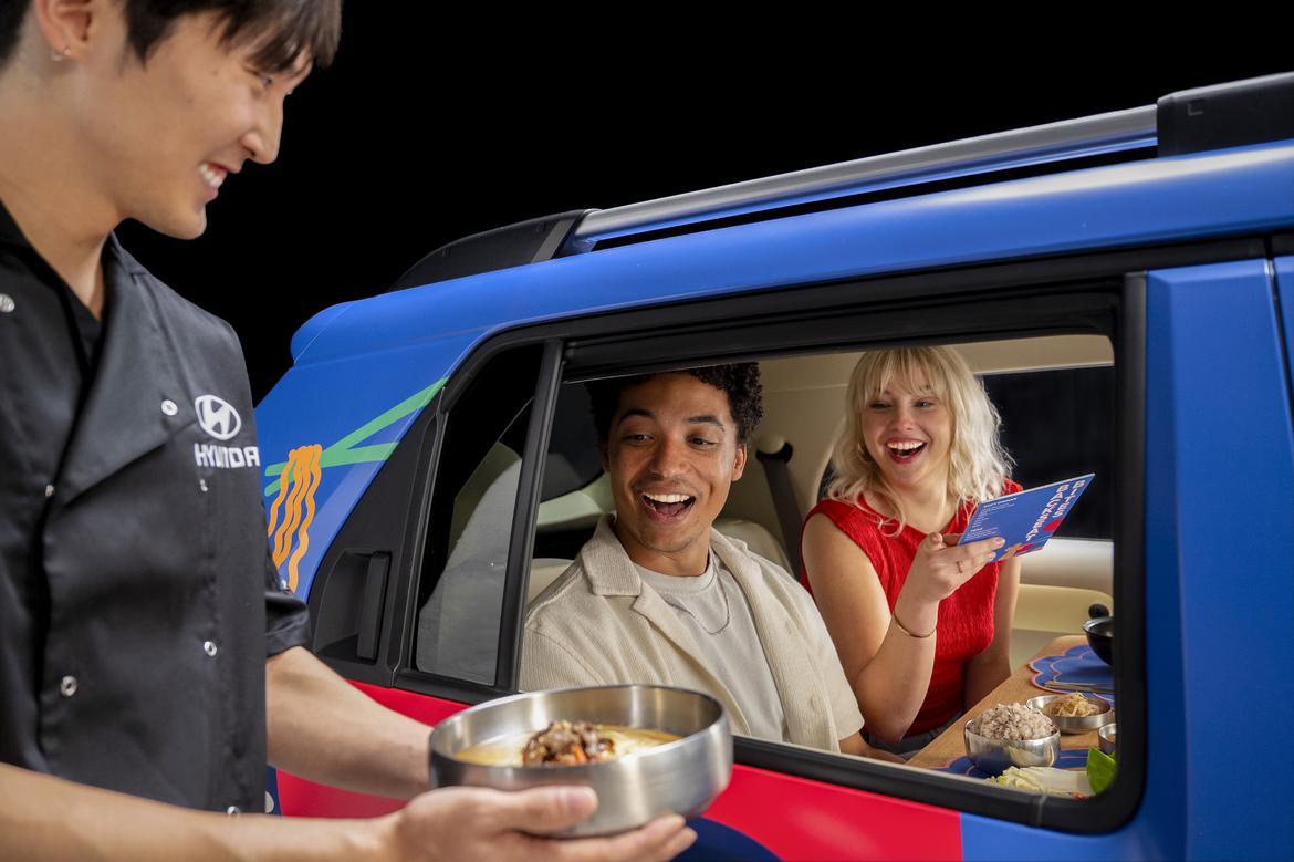 With a nod to the Korean cultural phenomenon of honbap–dining alone–Hyundai will set up a one-night experience where diners in London can eat a succulent Korean meal in the back seat of a Hyundai Inster city car that’s been specially outfitted with a proper table for the experience. Solo diners may also bring someone along so the two of them can be alone together.