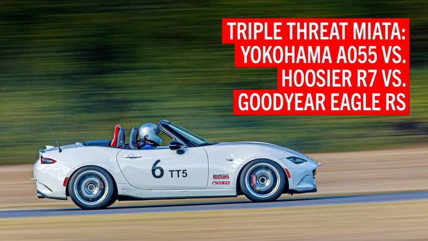 ICYMI: We used our Triple Threat ND Mazda Miata to compare the Yokohama Advan A055, Hoosier R7 and Goodyear Eagle RS DOT.