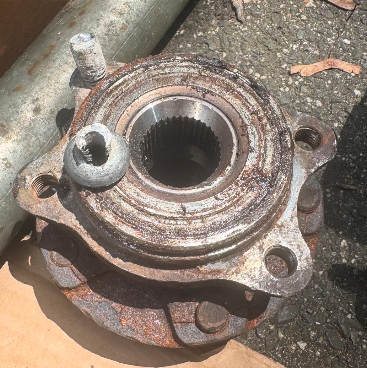 Very hot today, fought with a stripped bolt. But got the wheel bearing out, new one in, just have reassembly left. But stopped for a break. Might get back to it today or might rest and do it tomorrow.