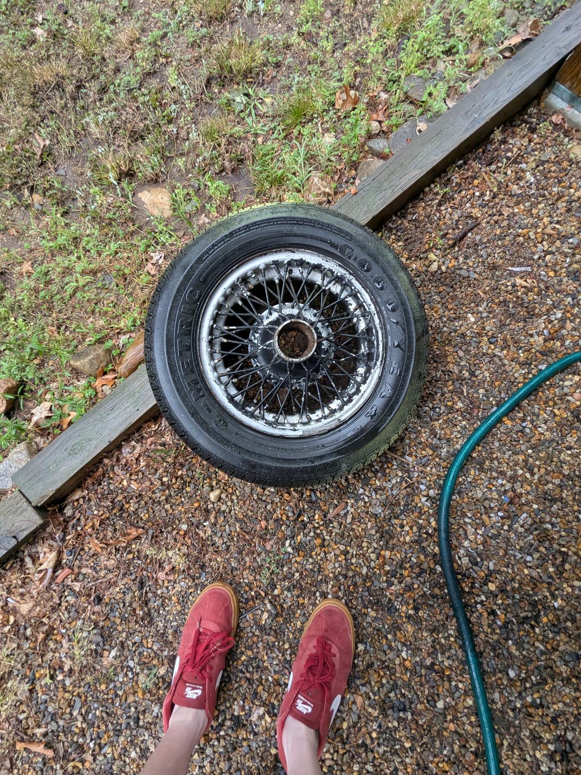 Took off front wheels to get them prepped for paint put the rear wheels on the front which I painted this week.
