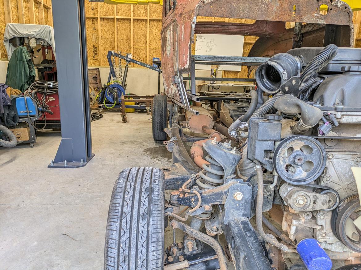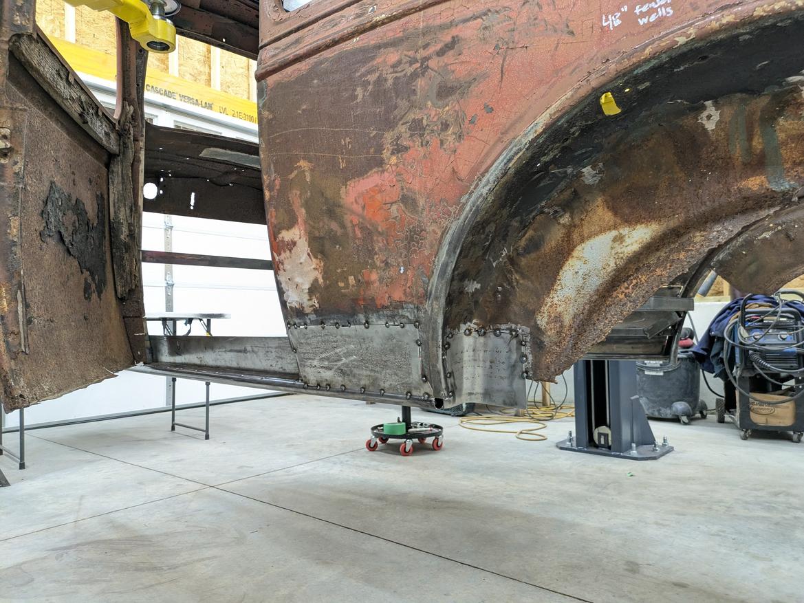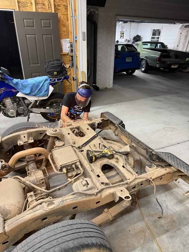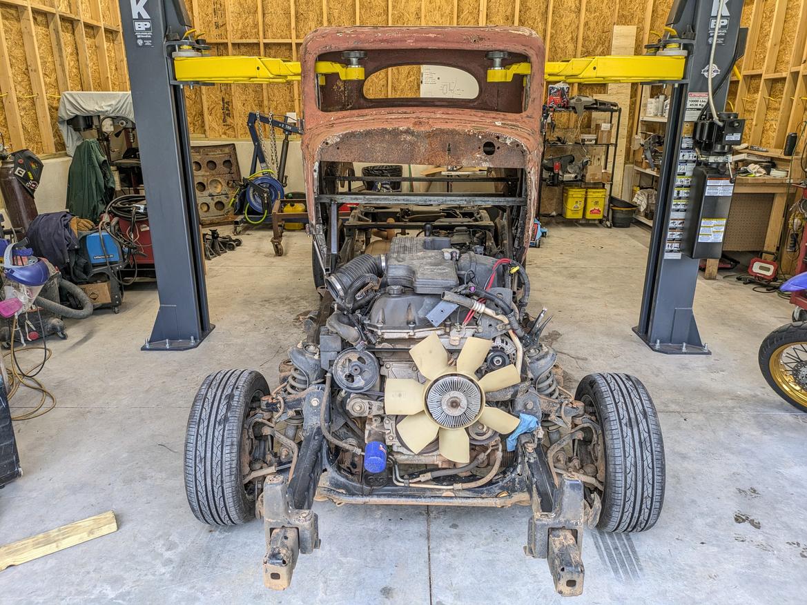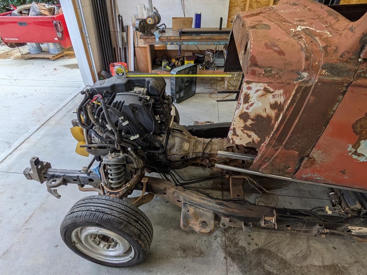 Enjoying your progress so far! Are you going to put the unmodified frame under it, tie the body to it, then chop up the front frame rails to fit? Or..?