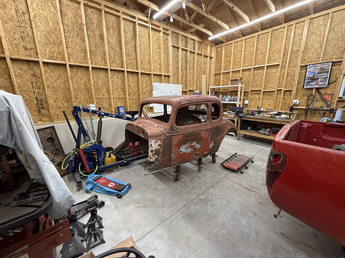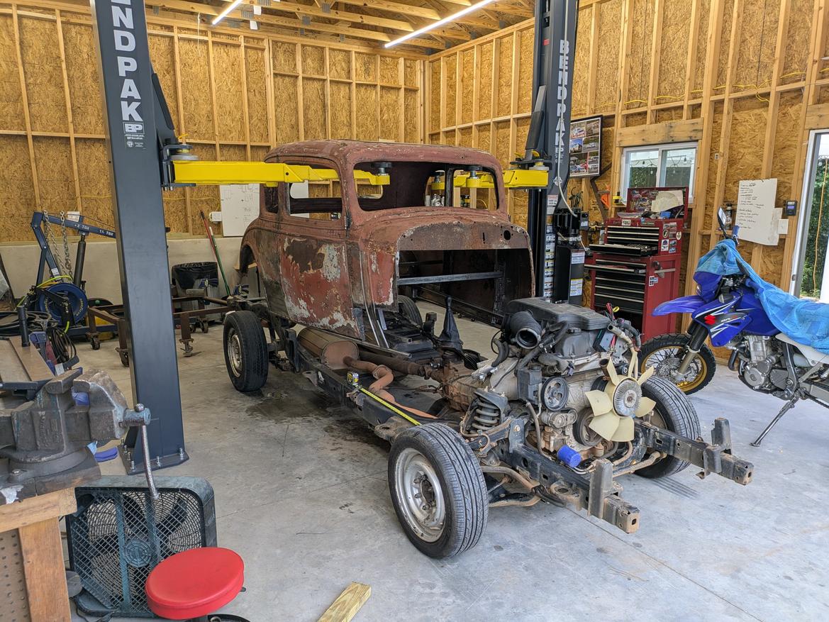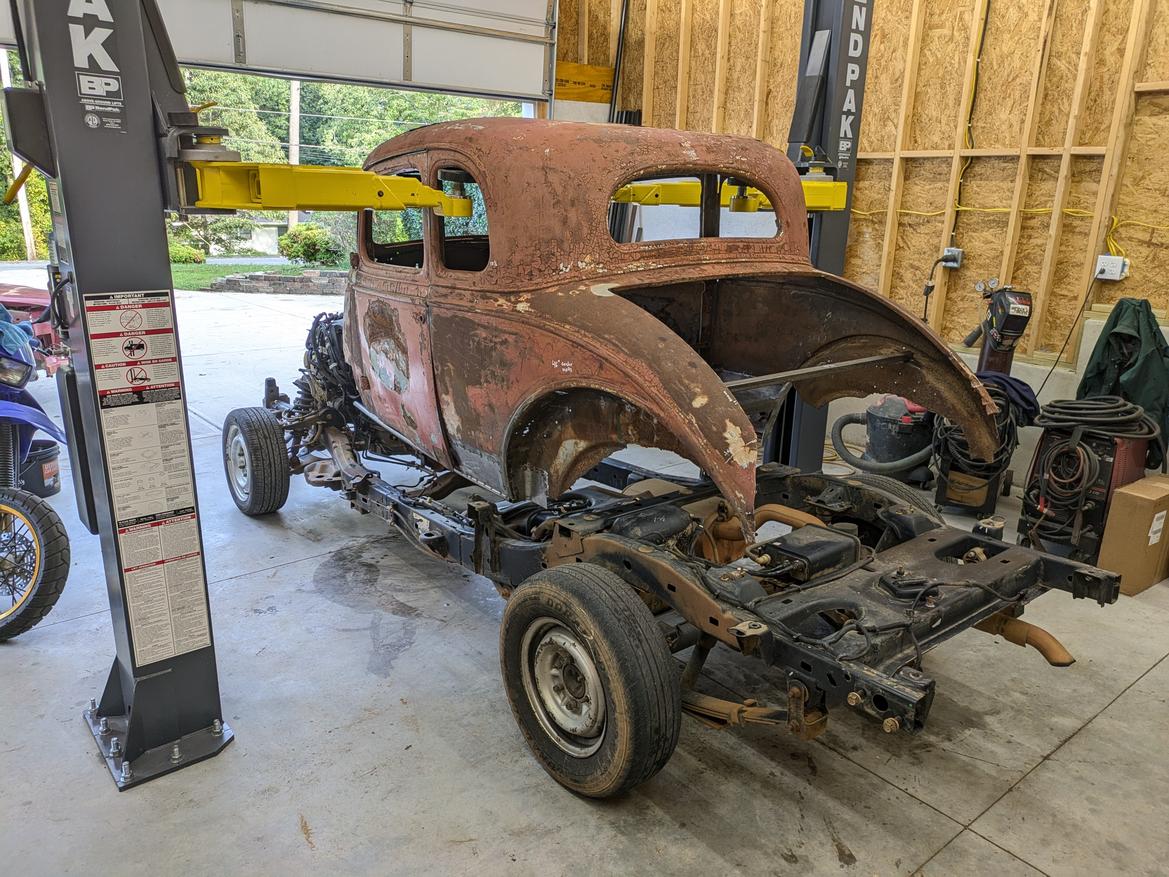 Hoping to find out tonight! Any GRM'ers in the Atlanta area are welcome over for some cab and bed removal. I know for sure that the truck frame is too wide near the firewall of the '34 body, so there will be some frame slicing and splicing.